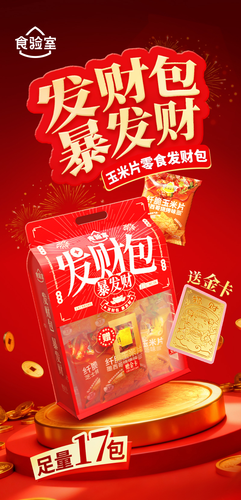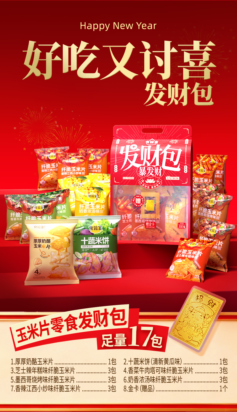 食验室零食发财礼包17件零食大礼包赠金卡