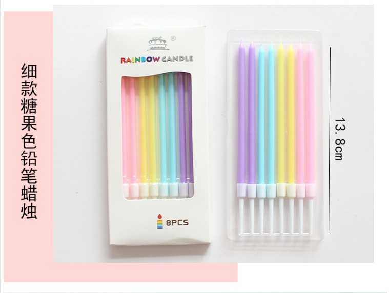 A13彩色直杆铅笔形蜡烛 糖果色蜡烛 白盒 生日蛋糕蜡烛 8支/板