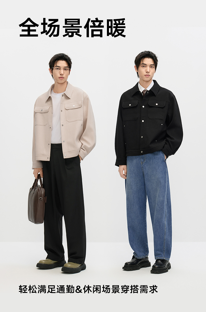 GXG男装 肌理面料休闲夹克外套男简约高级感夹克外套 24秋季热卖