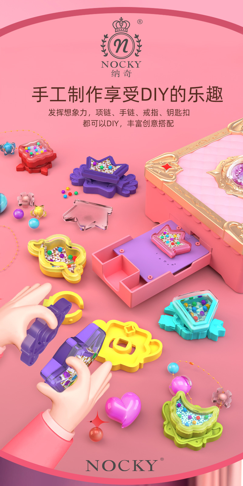 【送给小公主精美礼物】纳奇百变魔法盒 打造孩子的饰品 培养专注力 充分发挥想象力 项链、手链等都可以DIY丰富创意搭配
