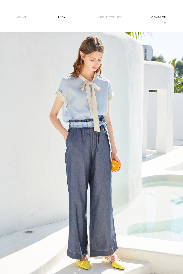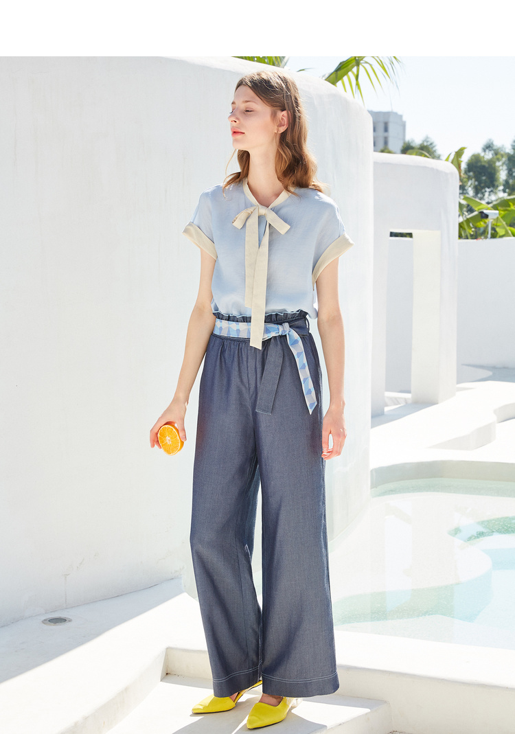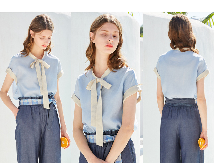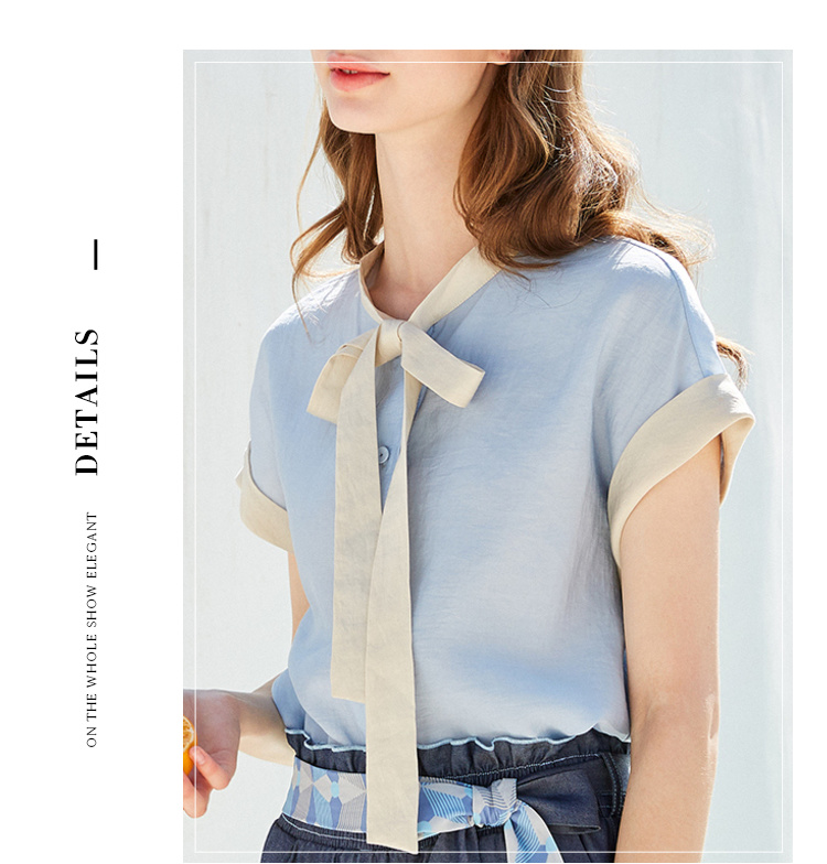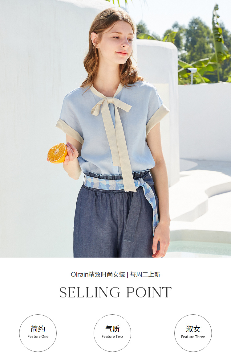 欧芮儿2019新款女装夏装系带蝴蝶结衬衫女宽松上衣女很仙的衬衣