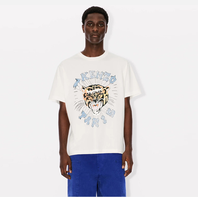 KENZO 高田贤三 男士手绘老虎徽标印花棉质圆领短袖T恤 白色 FE55 TS274 4SG 02