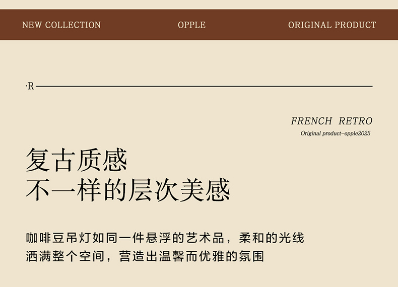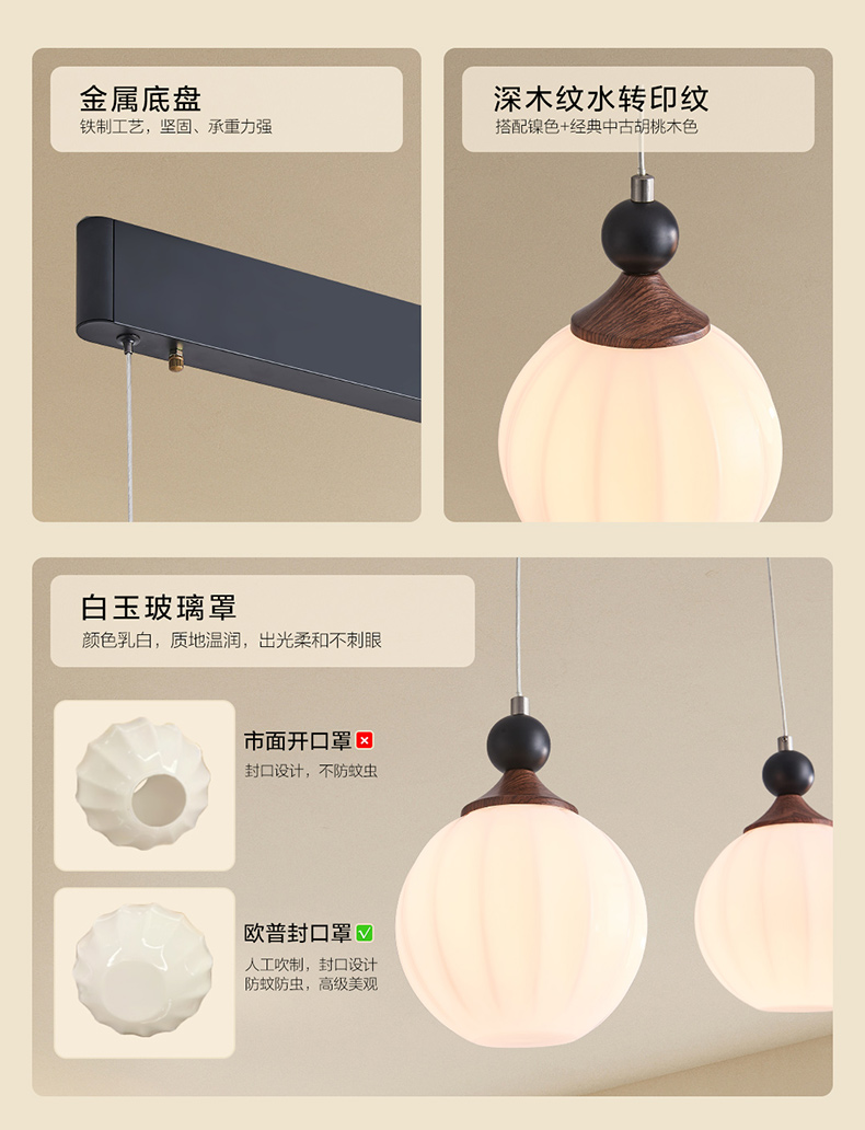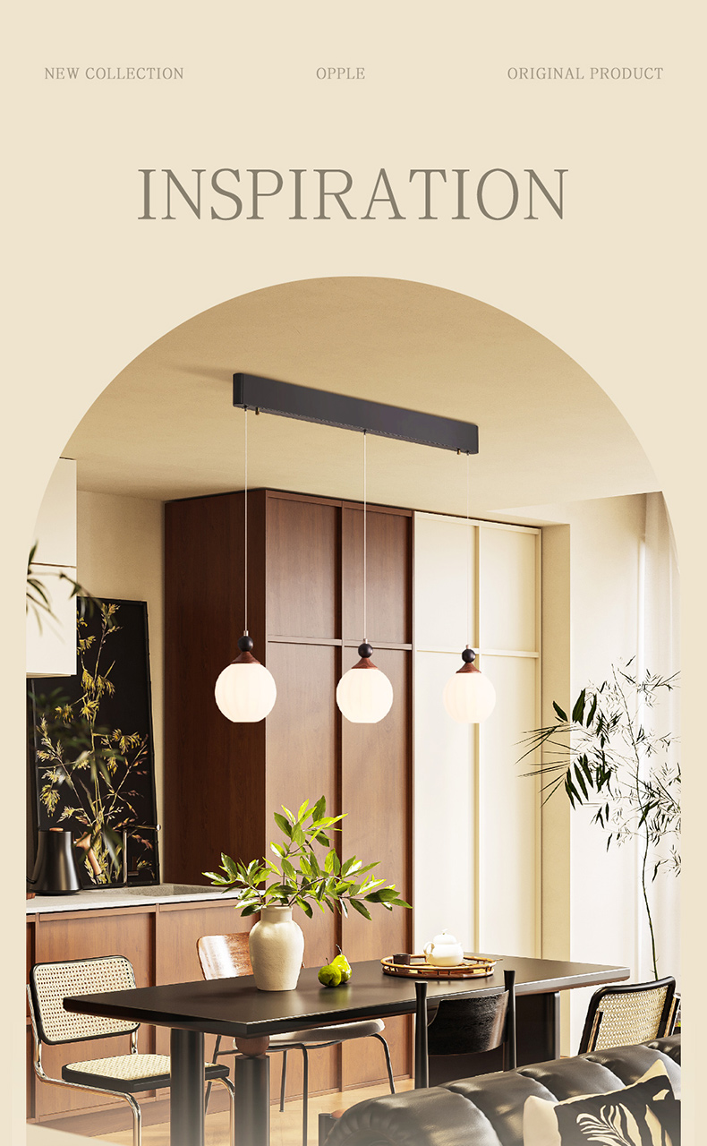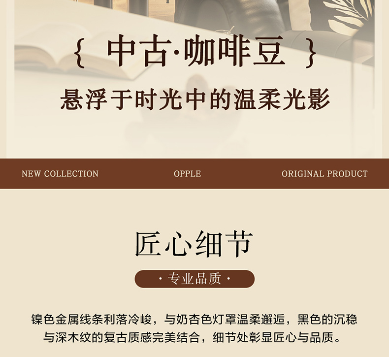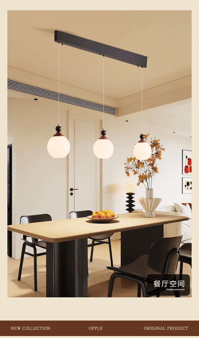 欧普(OPPLE)咖啡豆餐厅吊灯中古风胡桃木色复古客餐一体装饰灯