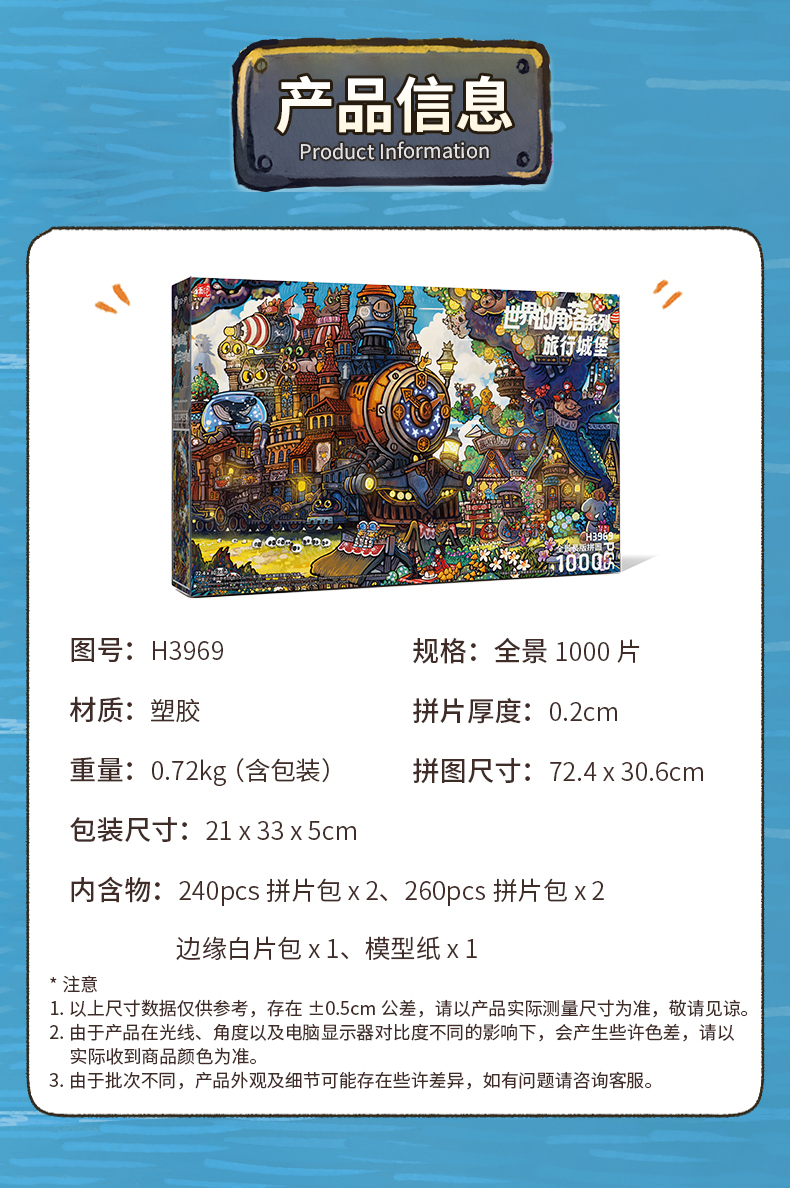 1000片 平面塑料拼图 H3969 全景长版拼图-泡面-世界的角落系列-旅行城堡