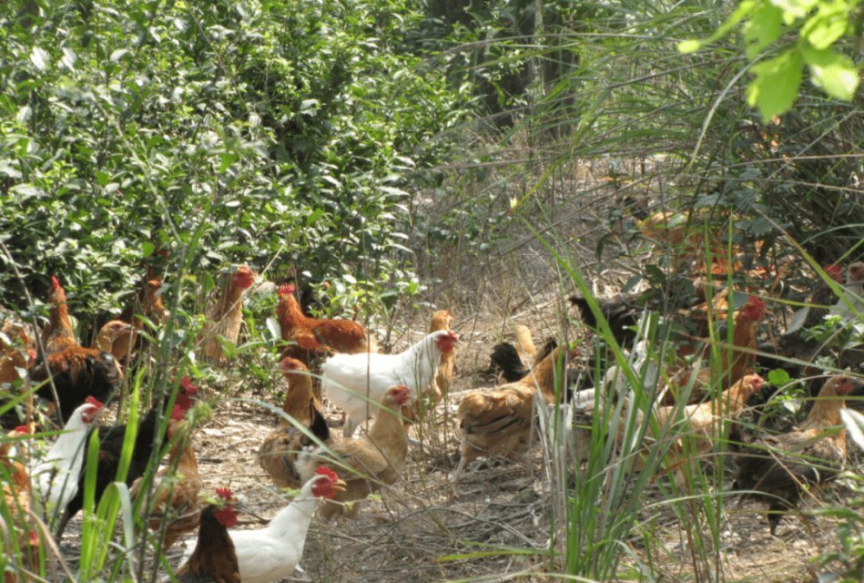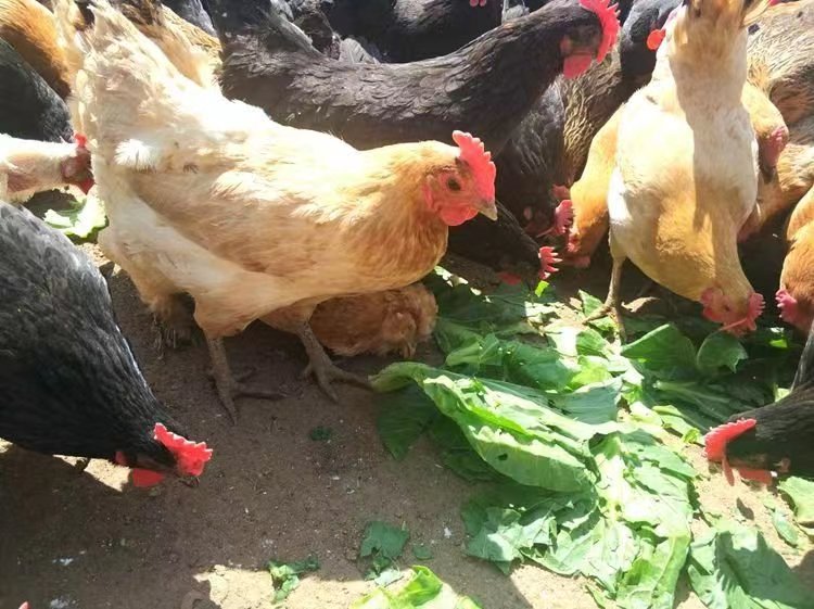 菜叶是鸡得最爱,也是必不可少的,每天除了鸡自寻找吃的我们也会适量给菜叶,啄食菜叶,绿色健康更有营养,来补充生长所需的维生素。