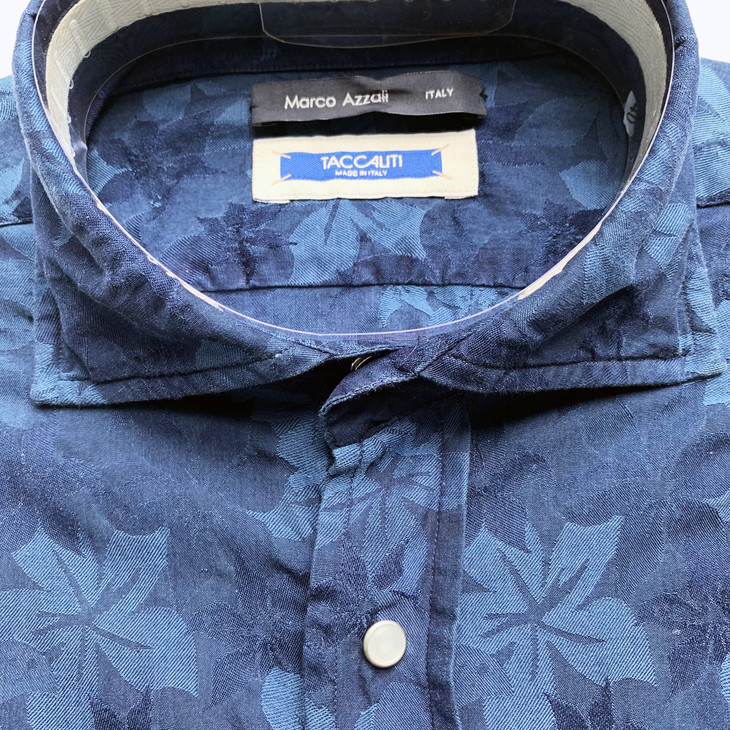 Marco Azzali 蓝色提花长袖衬衫 C3625600