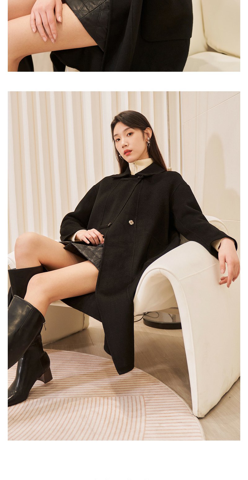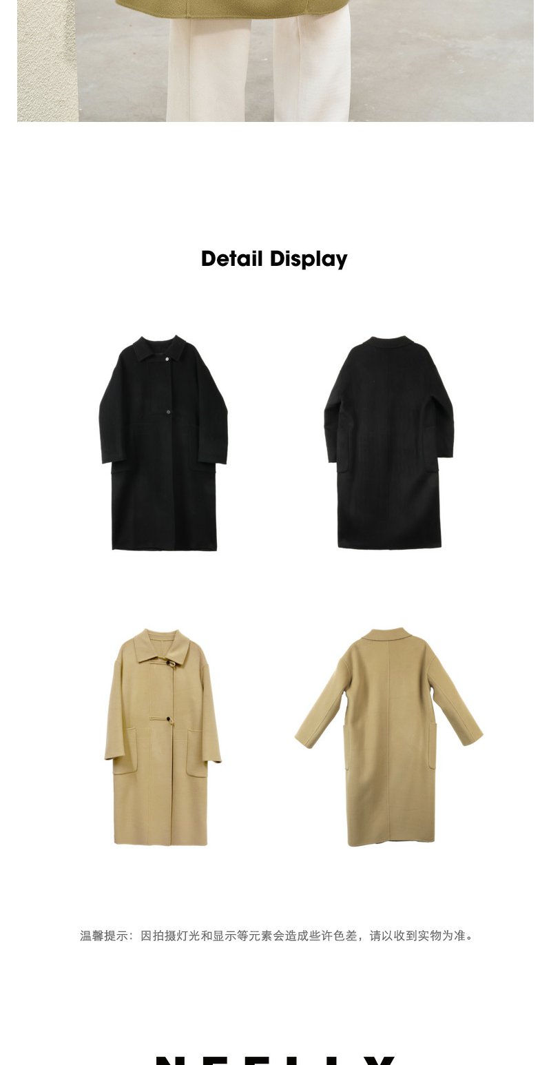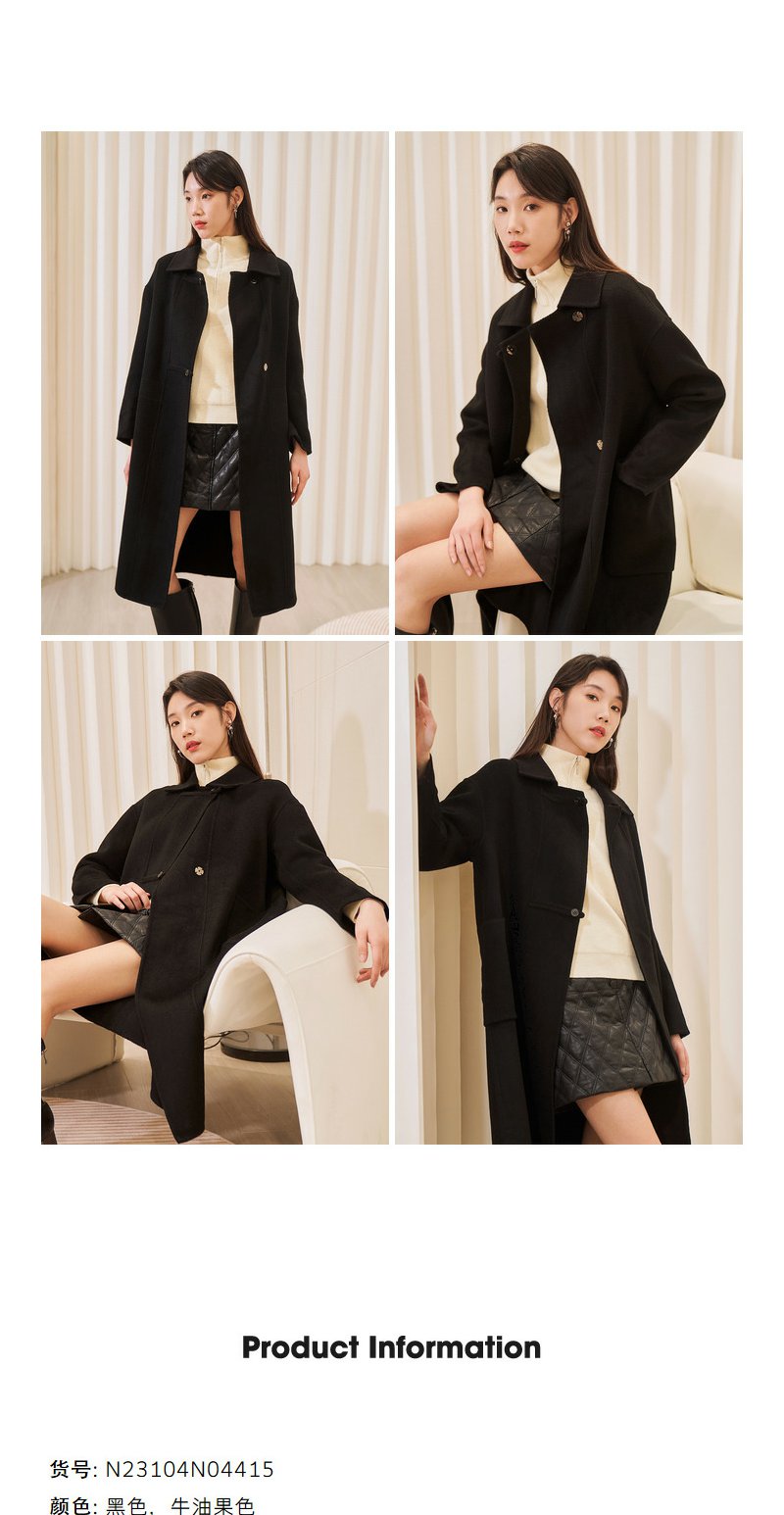NEELLY纳俪商场同款翻领双面呢大衣女中长款冬季新款毛呢外套N23104N04415