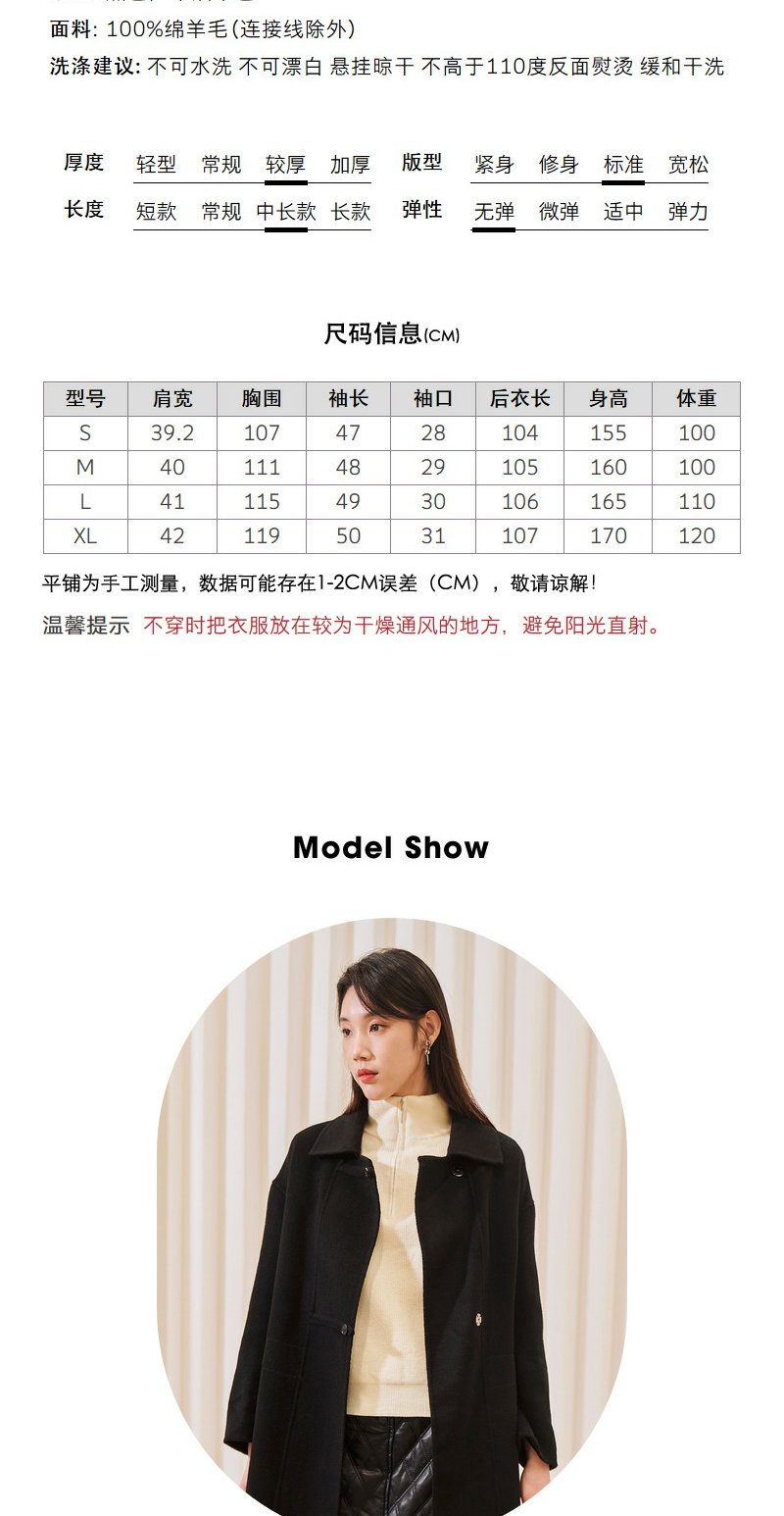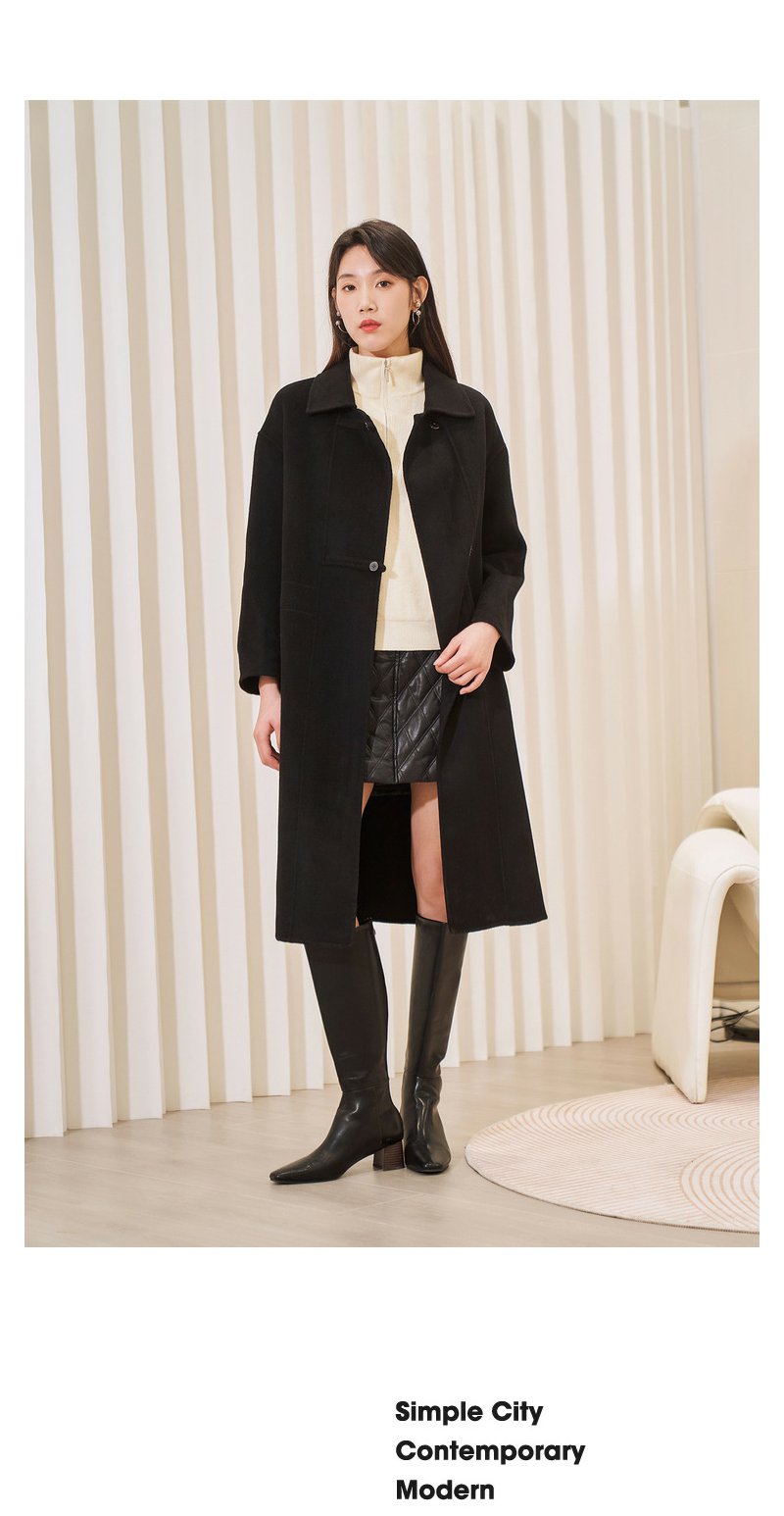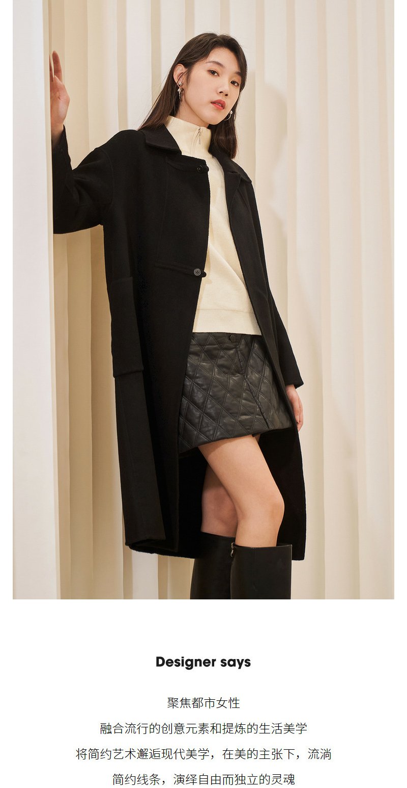 NEELLY纳俪商场同款翻领双面呢大衣女中长款冬季新款毛呢外套N23104N04415