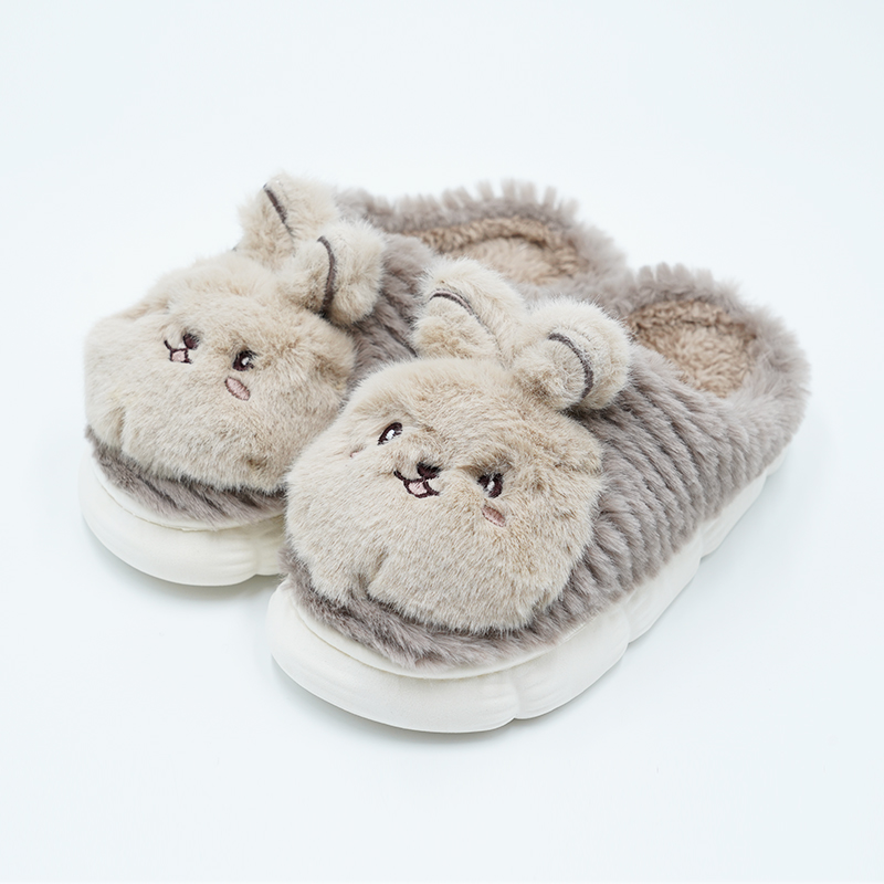 女童加绒棉拖鞋可爱兔子居家毛绒拖鞋秋冬保暖防滑外穿YXPS3165