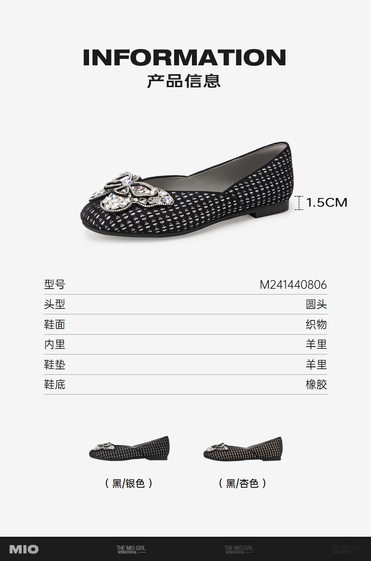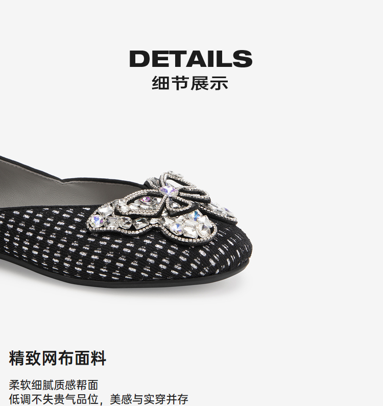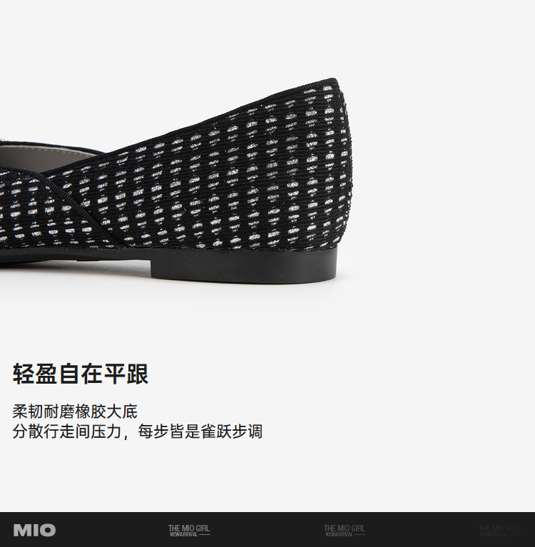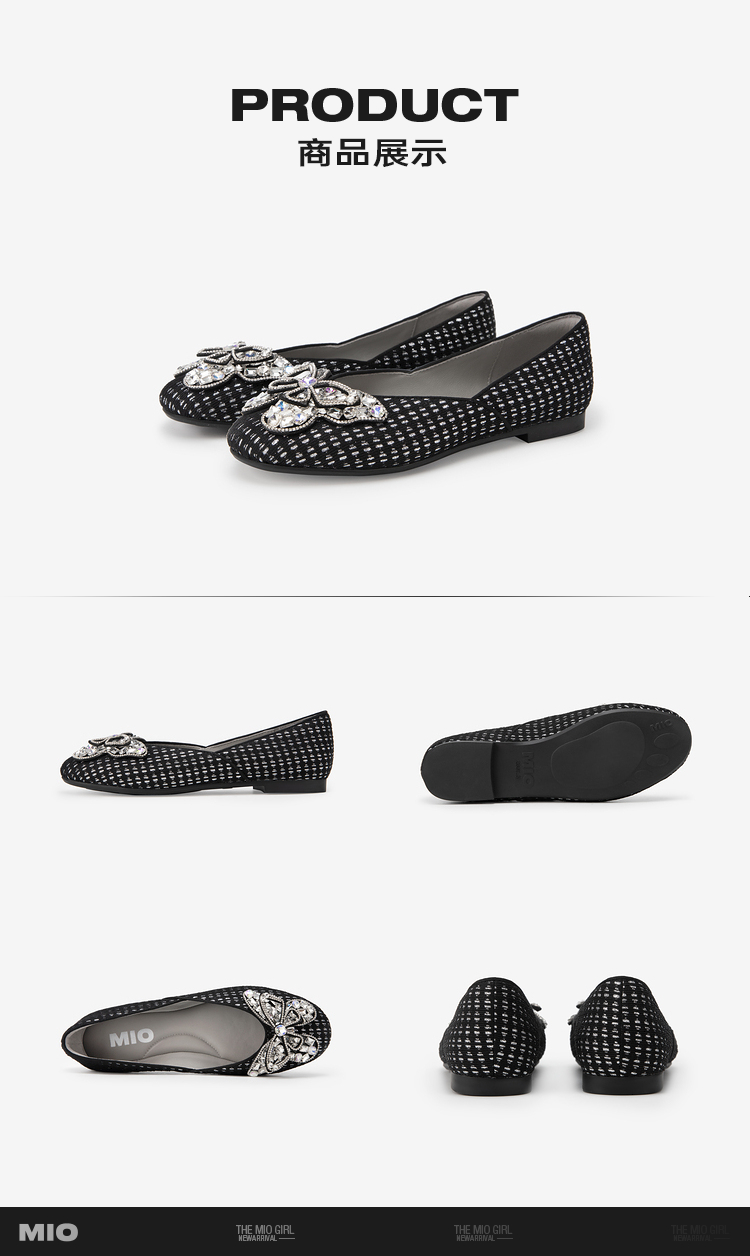 MIO米奥春季圆头平跟时髦小单鞋闪钻蝴蝶俏皮浅口单鞋女鞋M241440806