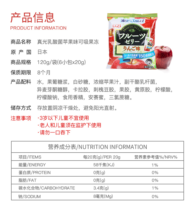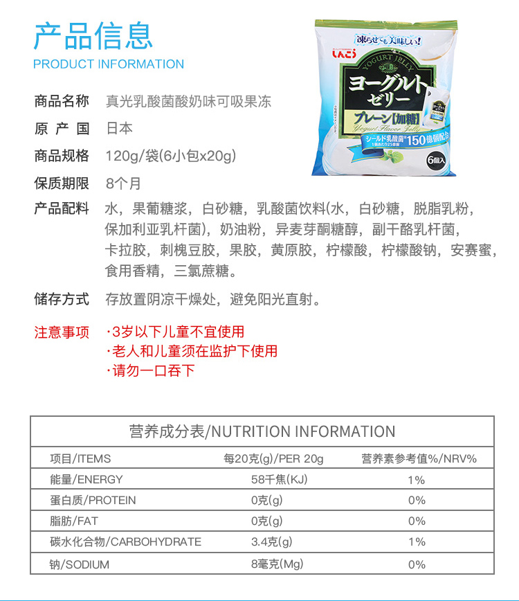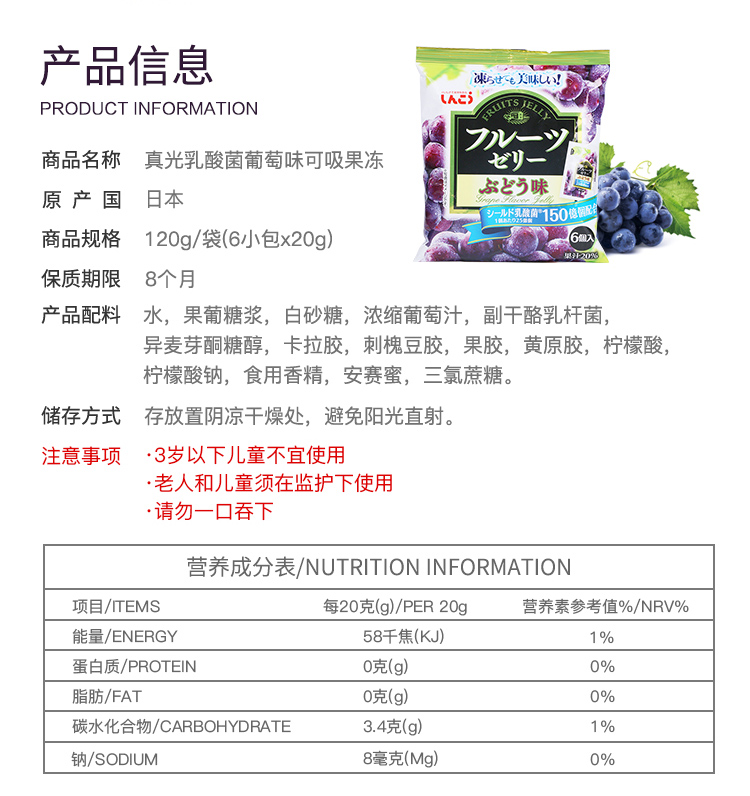 日本进口真光乳酸菌果冻儿童可吸果冻120g