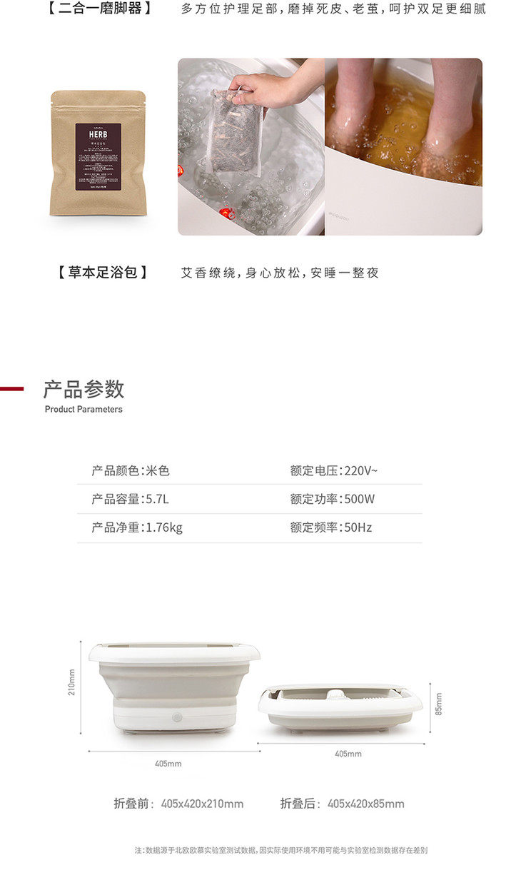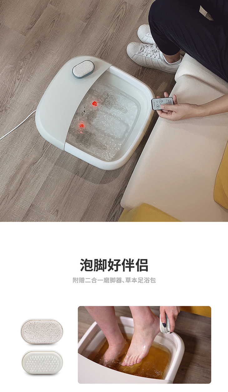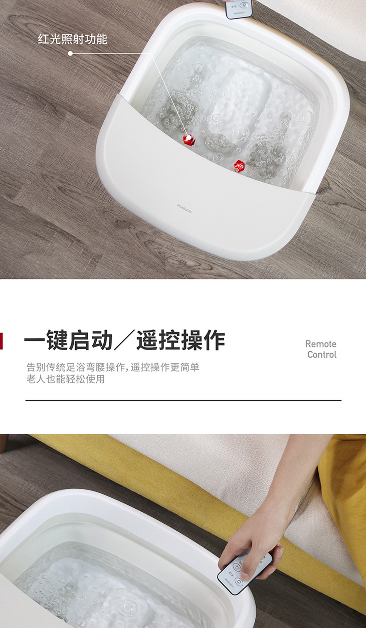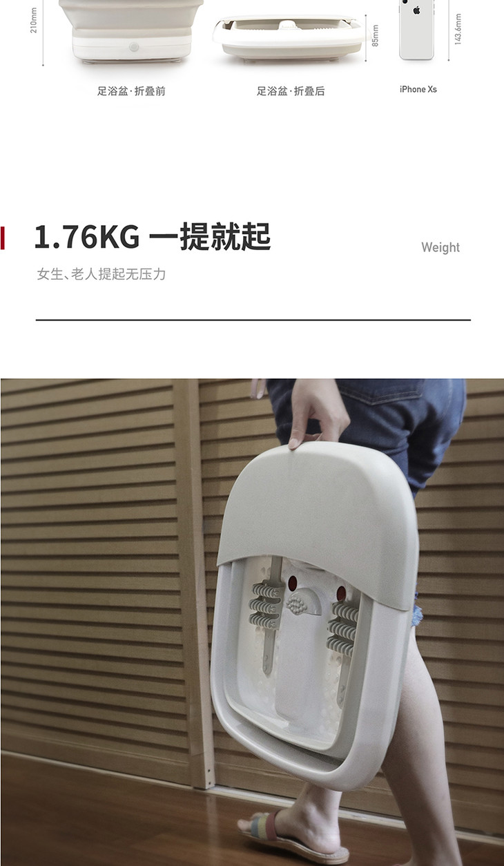北欧欧慕可折叠足浴盆器自动按摩洗脚盆电动加热家用恒温泡脚桶