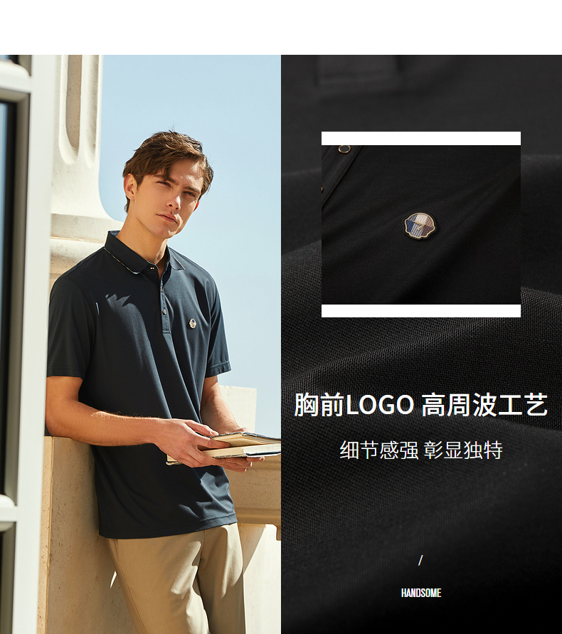 柒牌男士短袖polo衫夏季新款商务休闲中青年高弹无缝领保罗衫 124T70530