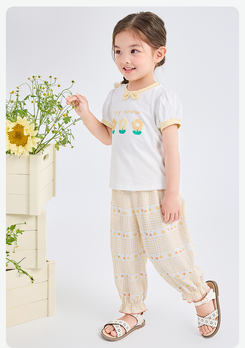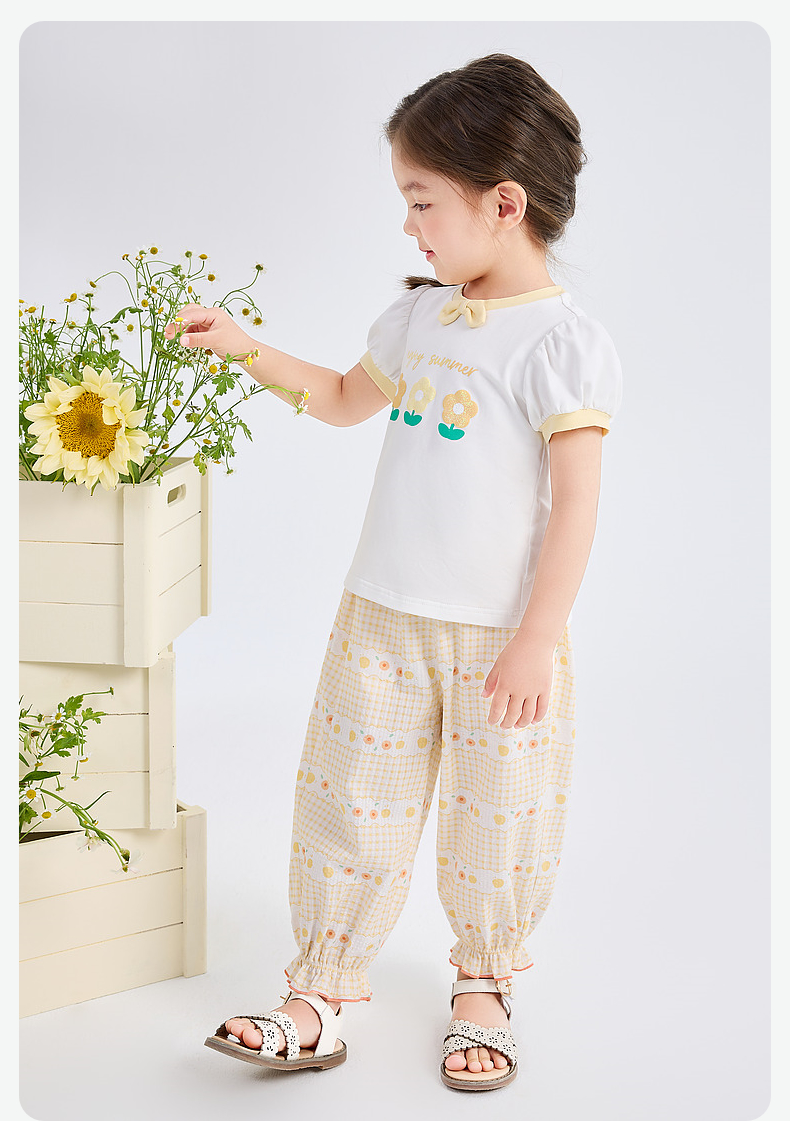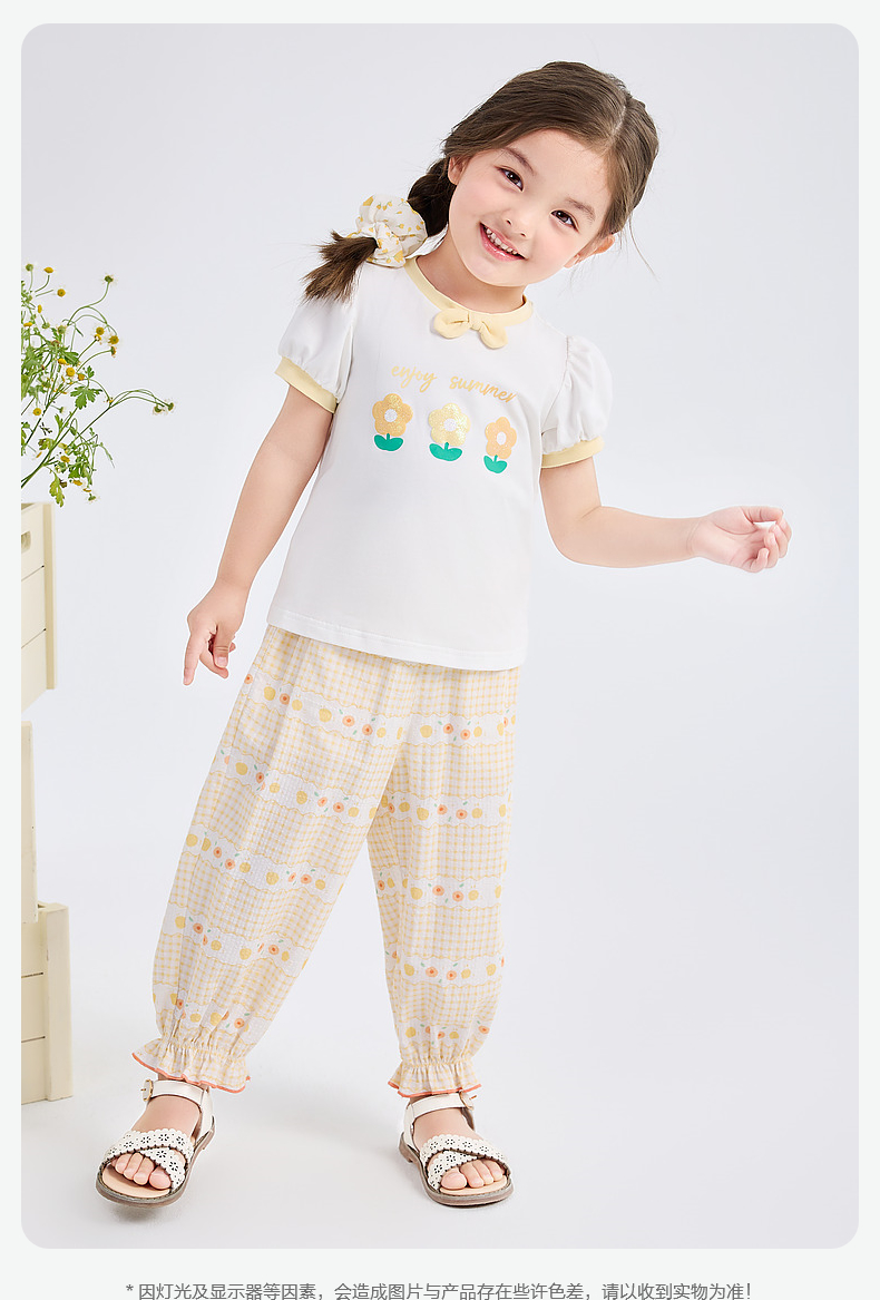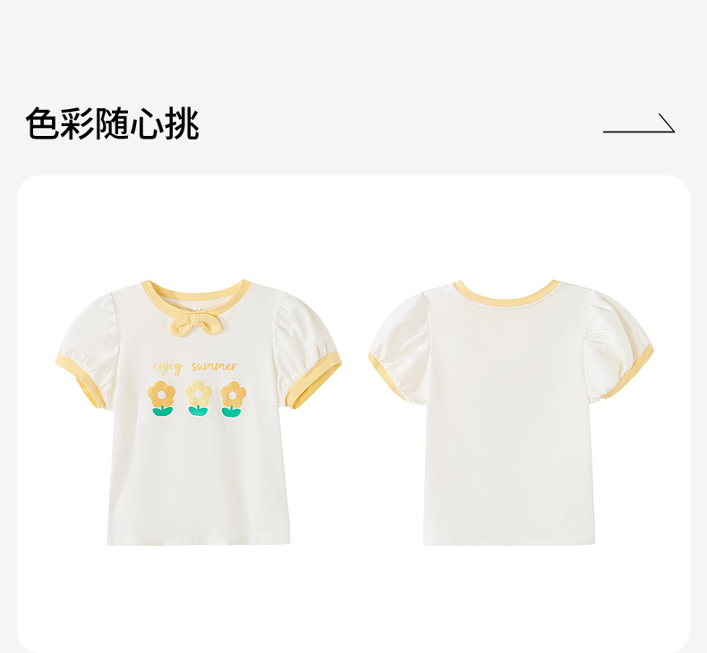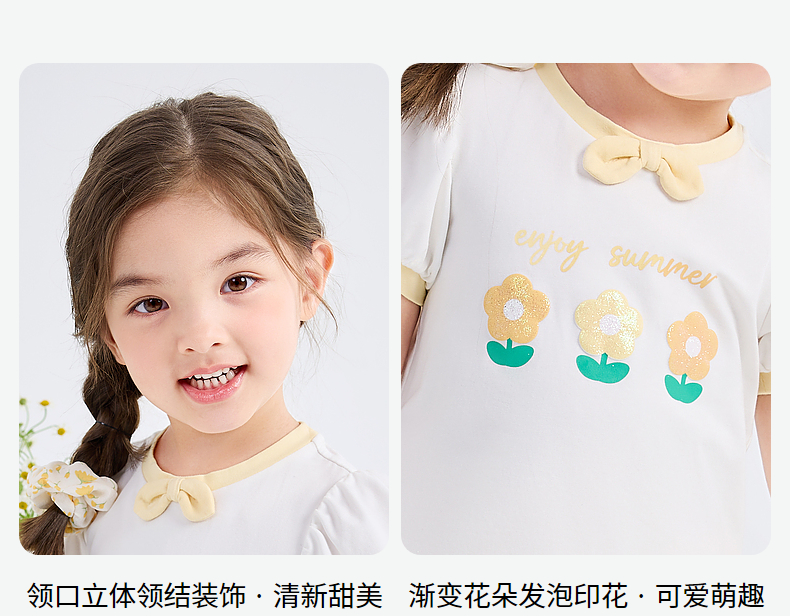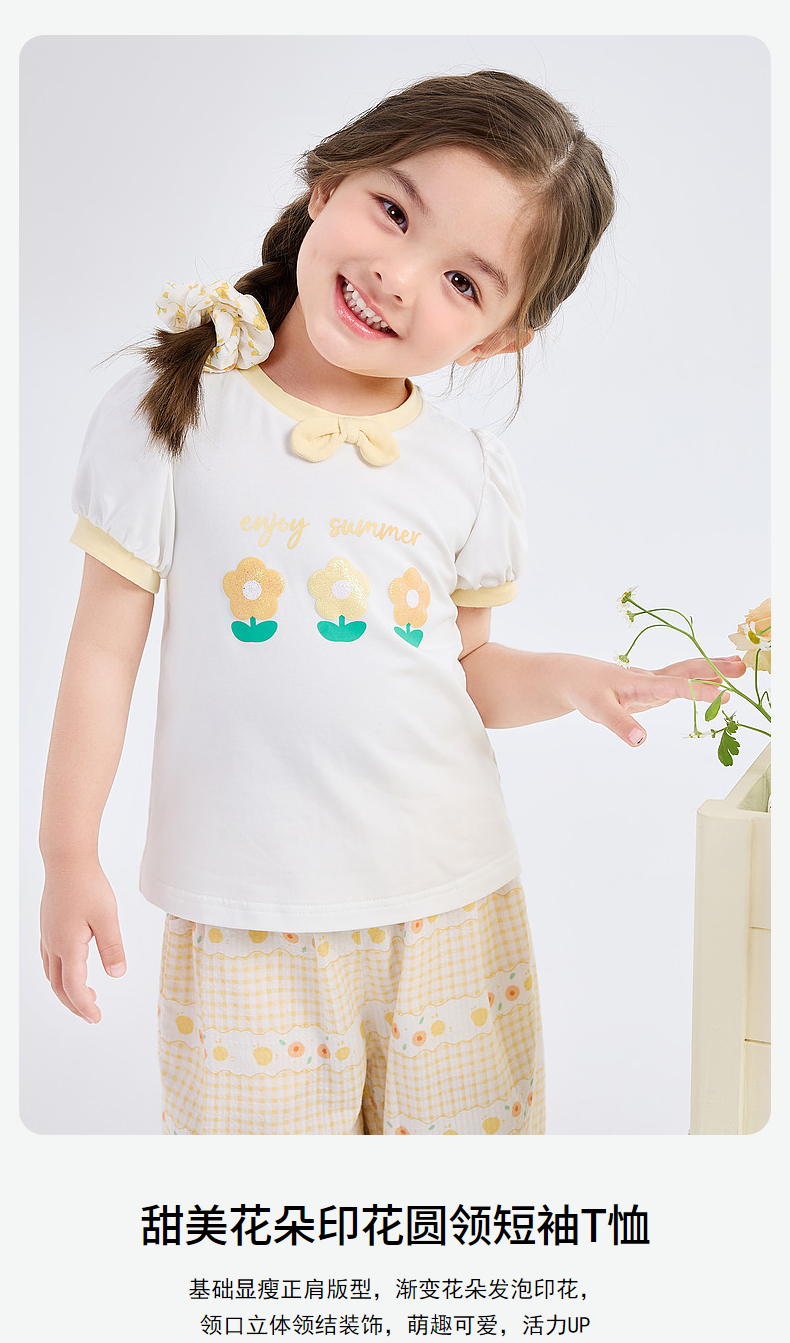 笛莎Deesha 2026年夏季新款青少年字母印花精梳棉T恤
