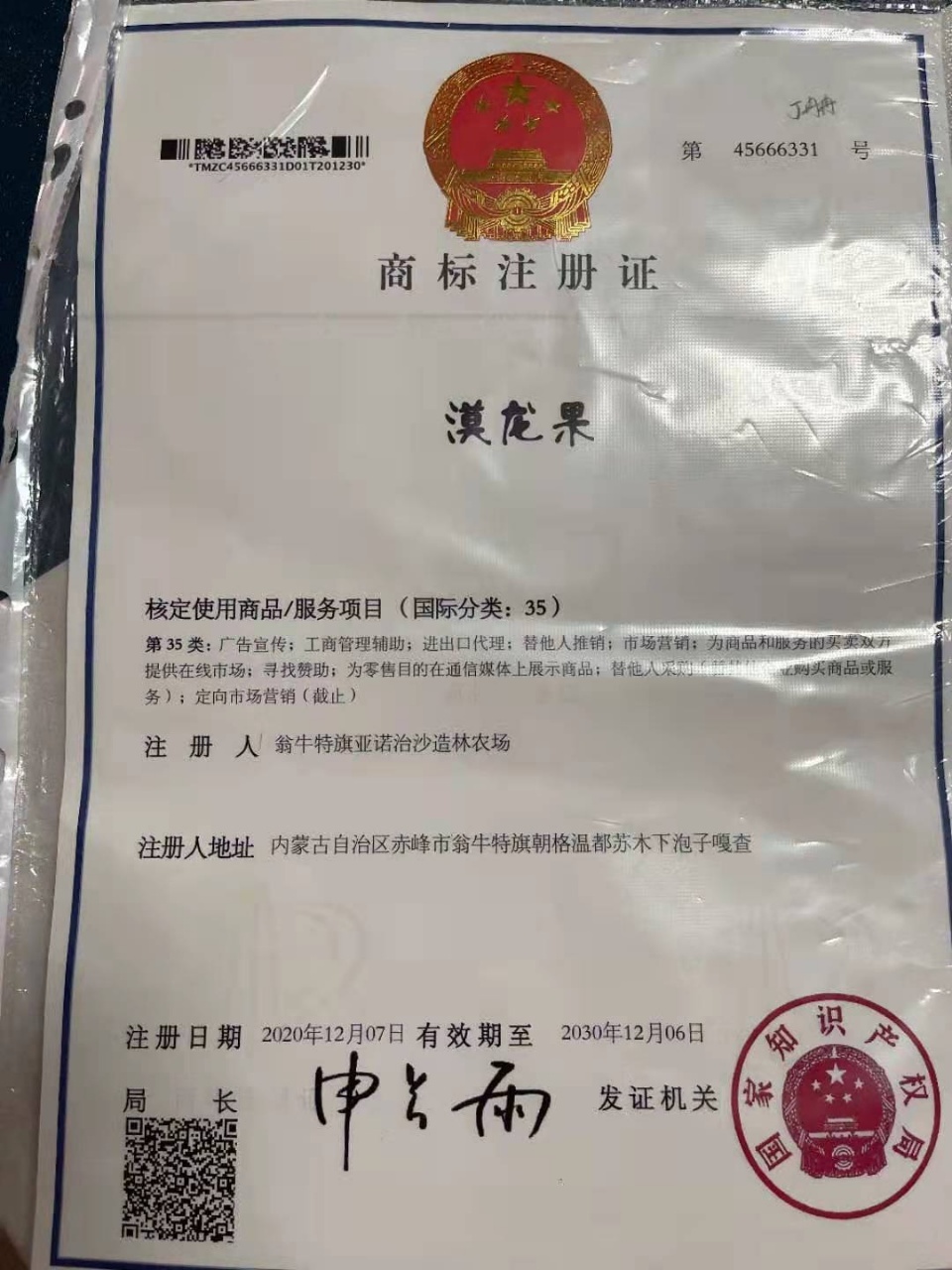 退休老人倪铁军二十年治理赤峰翁牛特旗的沙漠,种植的有机苹果,取名“漠龙果”。是中国最北端的沙漠有机苹果。酸甜適宜、清脆爽口。独特的高海拔沙漠气候、昼夜温差大,天赐的地理小环境、高积温使该苹果糖度比其他地区寒富士苹果糖度高5度多。