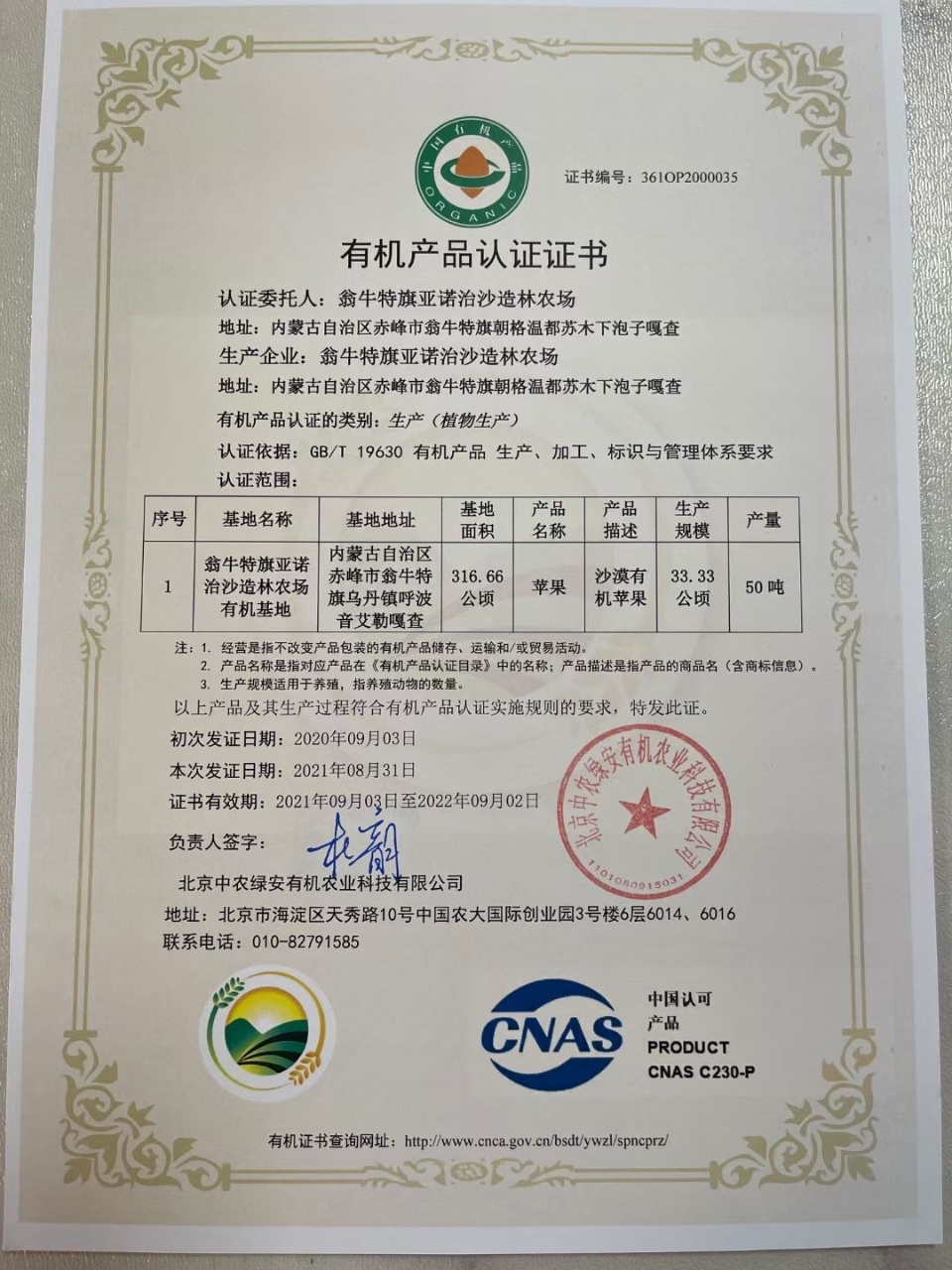 施用有机肥,不使用化肥。有机沙漠苹果园身处科尔沁沙漠腹地,远离村庄,没有其他的污染源。