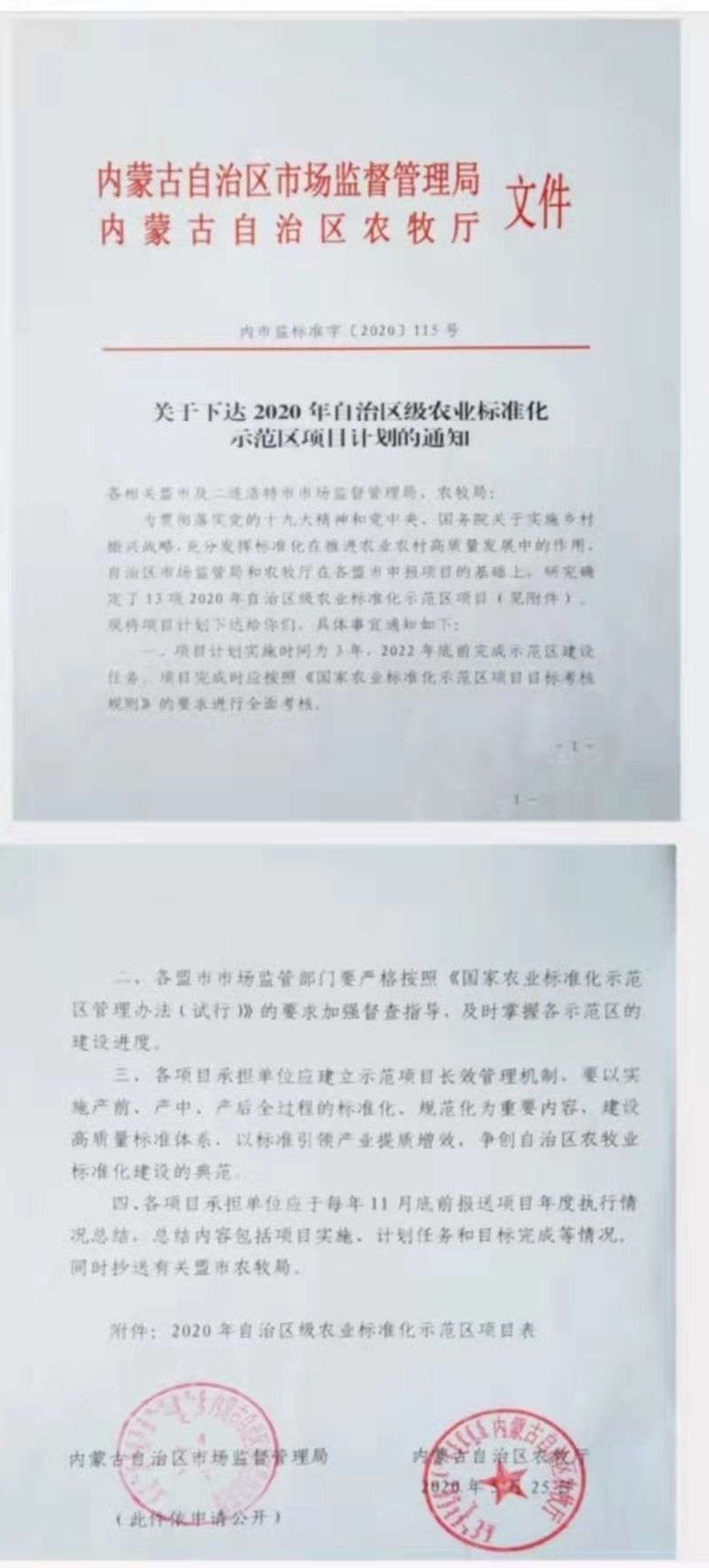 是否是自治区农业标准化示范区项目:是