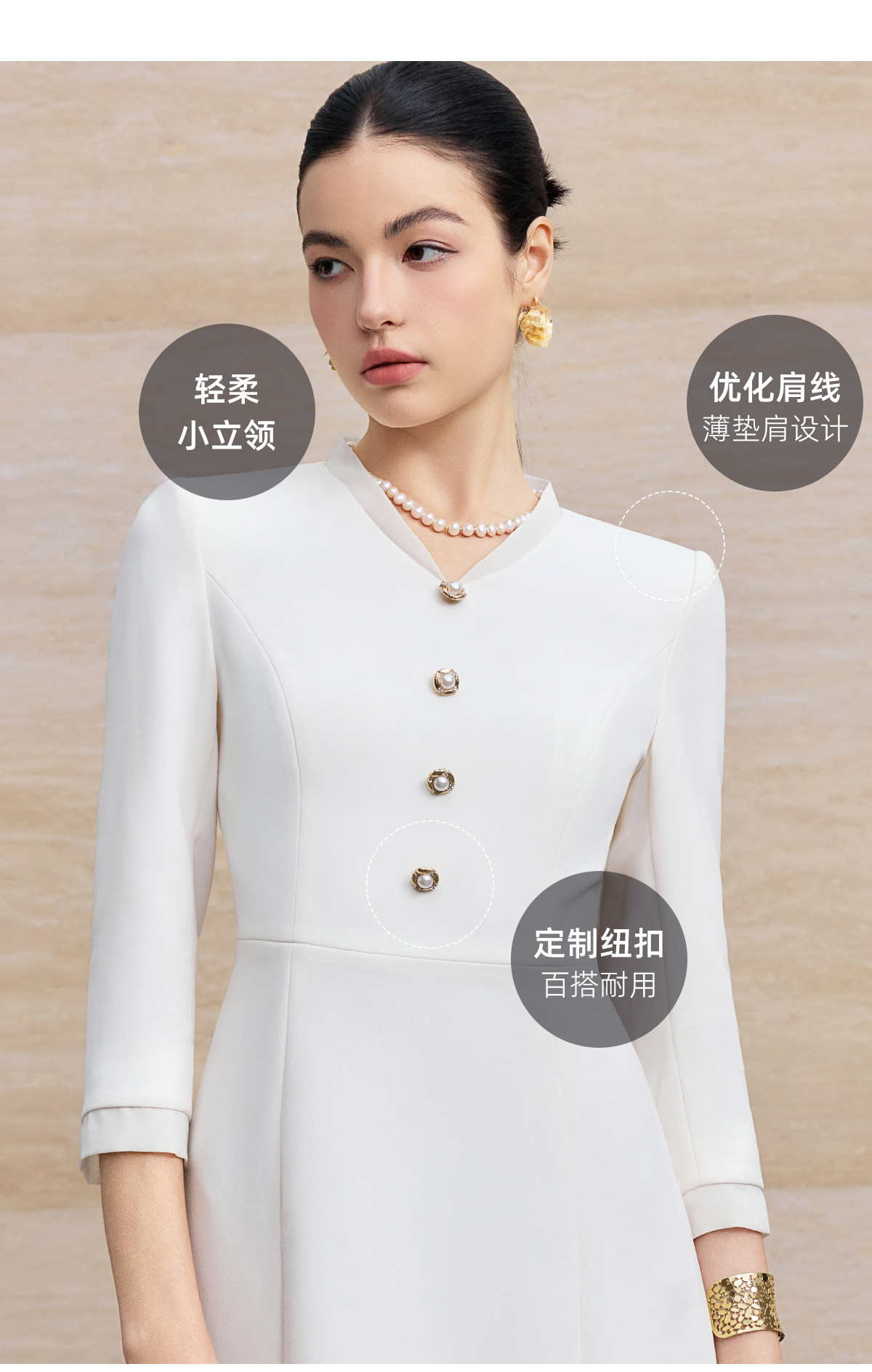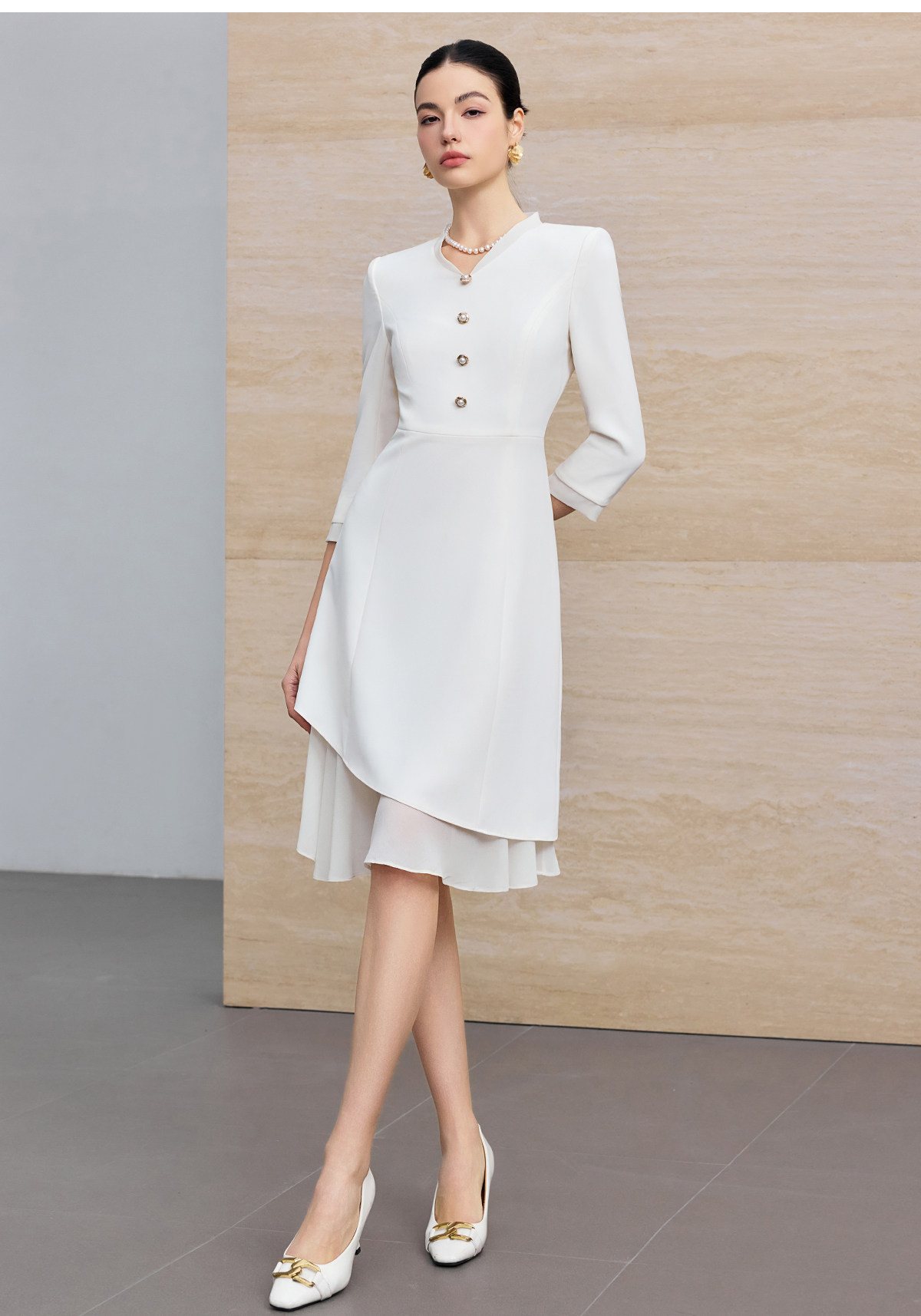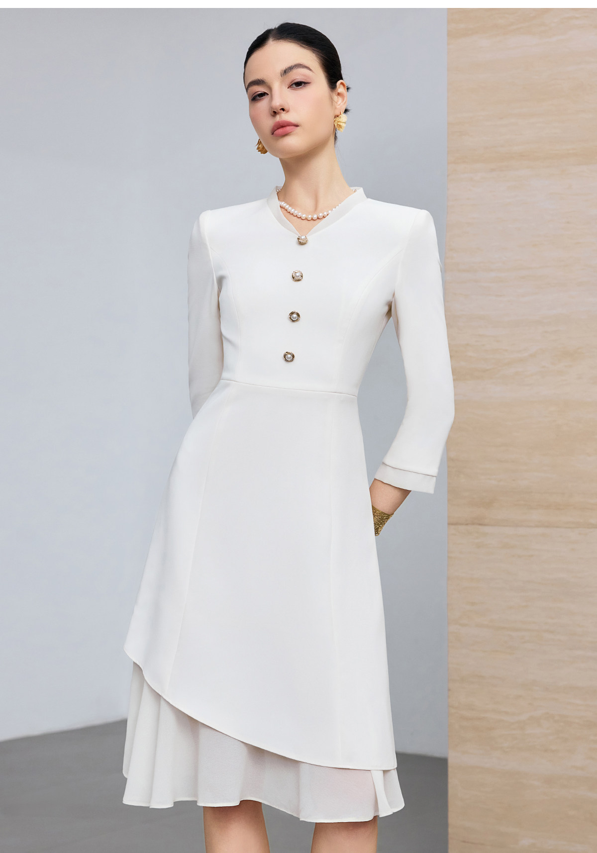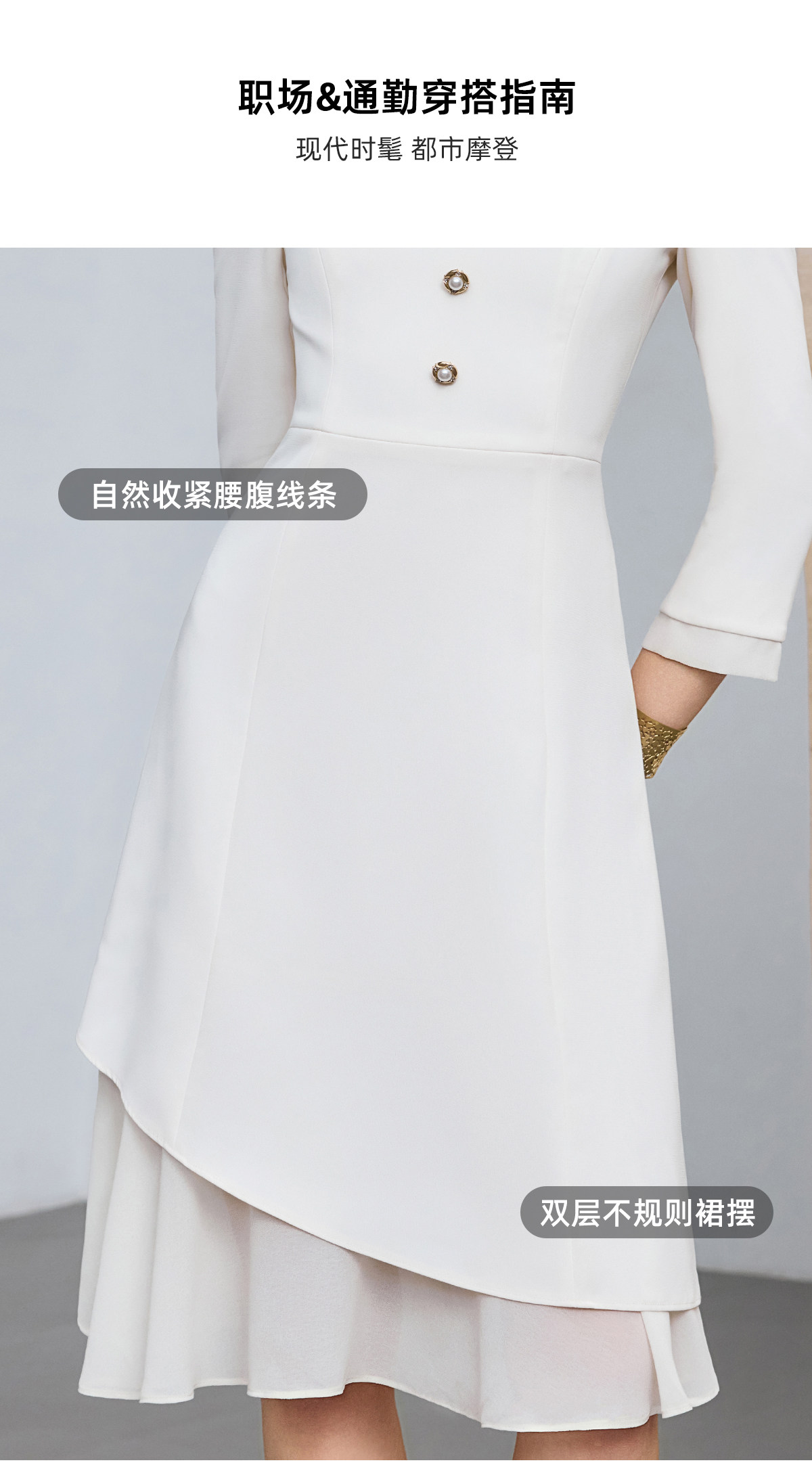 IWY/优雅风白色连衣裙女长袖收腰显瘦通勤裙高级感气质西装裙25Q861