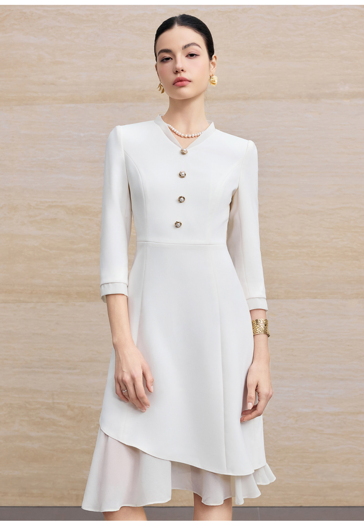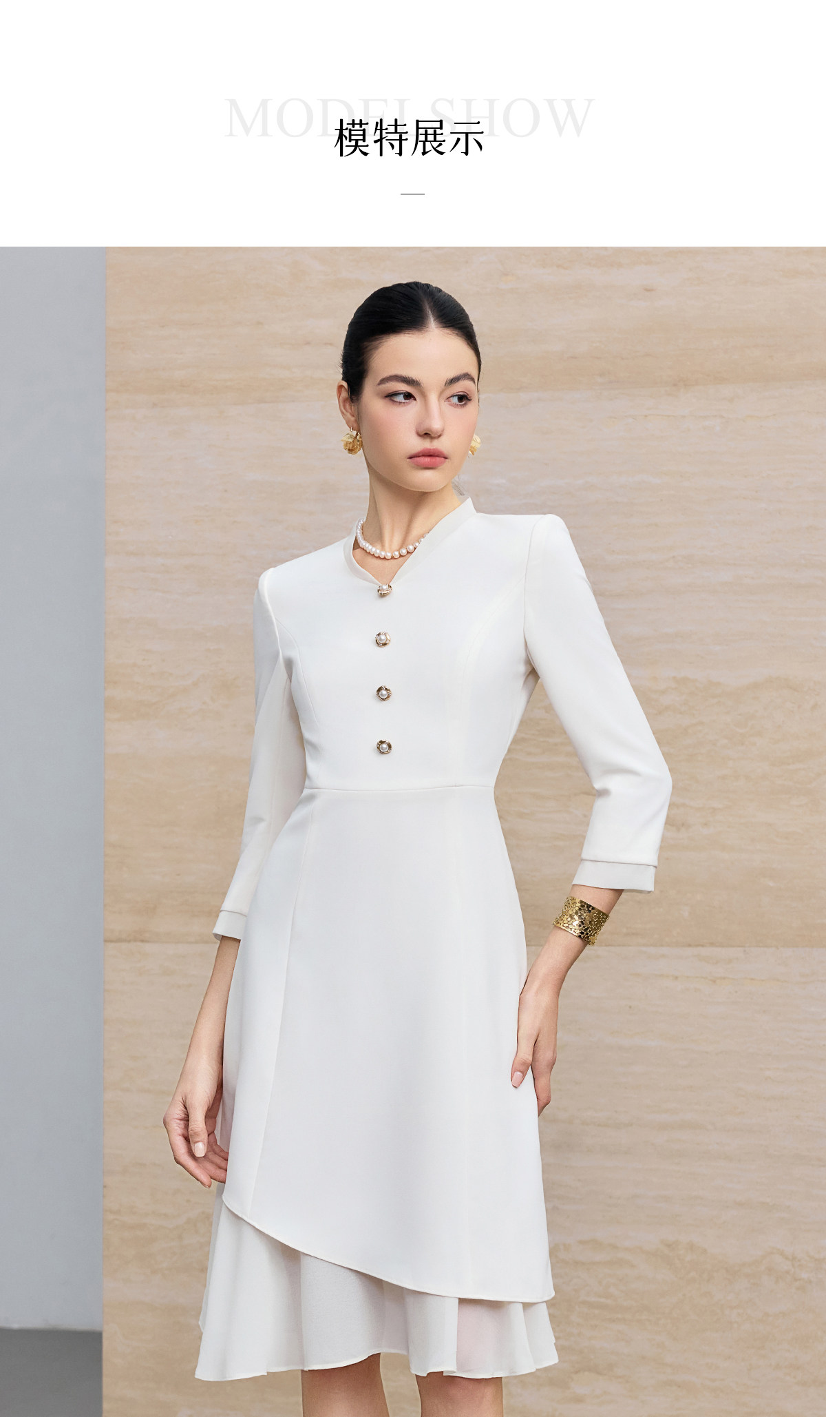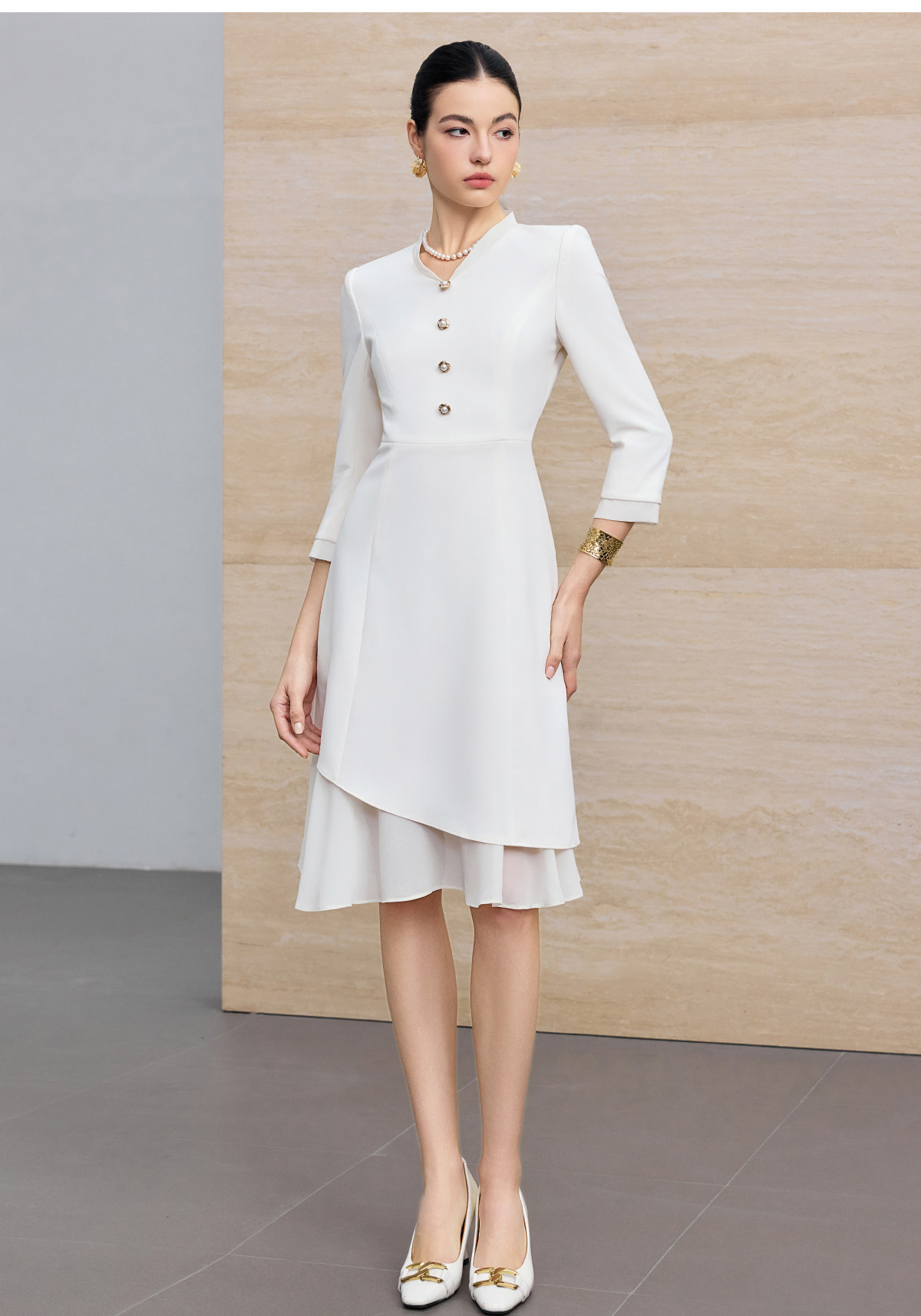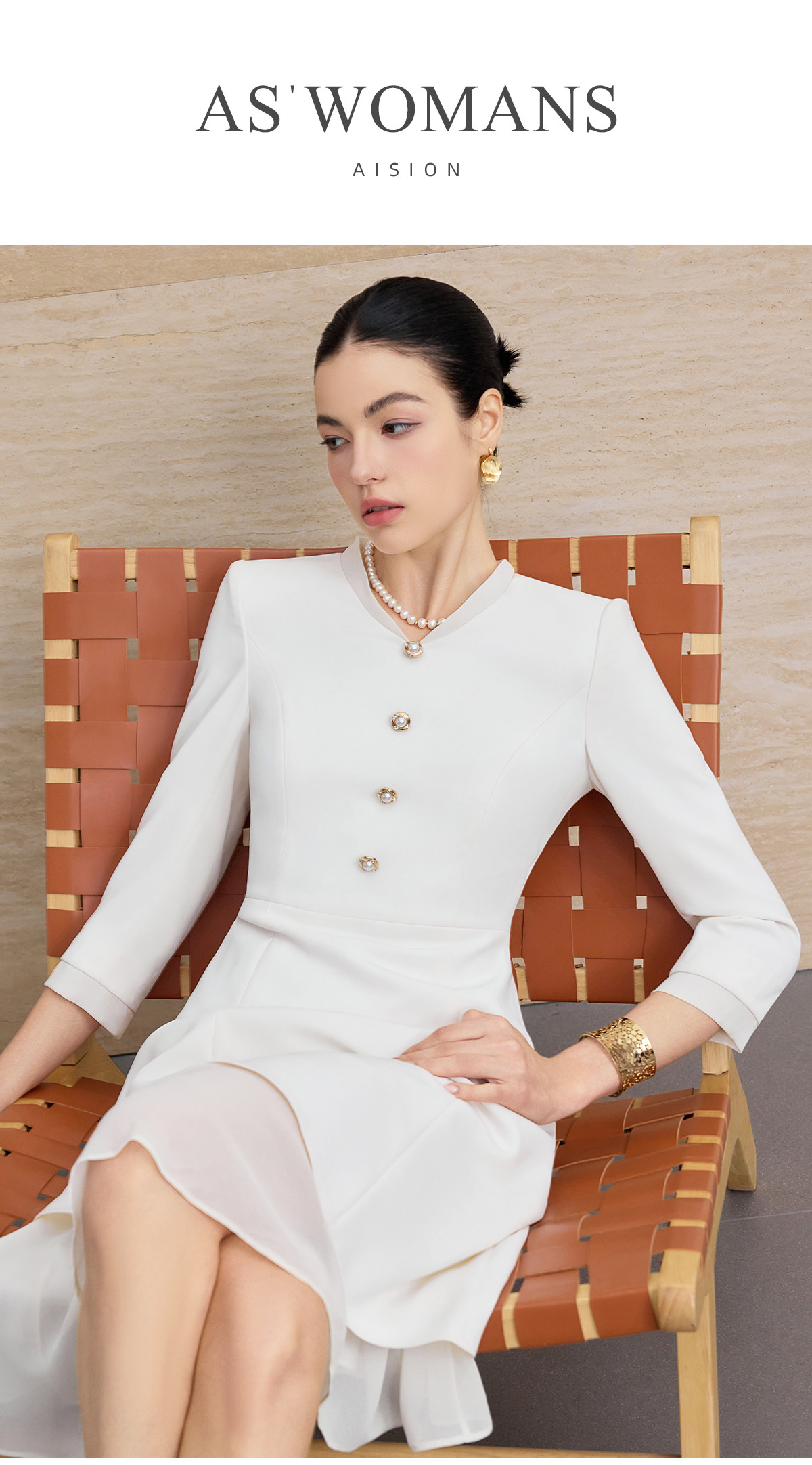 IWY/优雅风白色连衣裙女长袖收腰显瘦通勤裙高级感气质西装裙25Q861