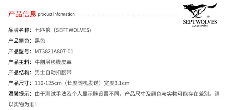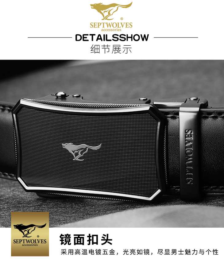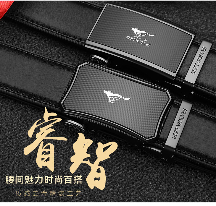 七匹狼男士皮带潮流百搭中青年牛皮自动扣腰带男休闲商务裤腰带M73821A807-01 黑色