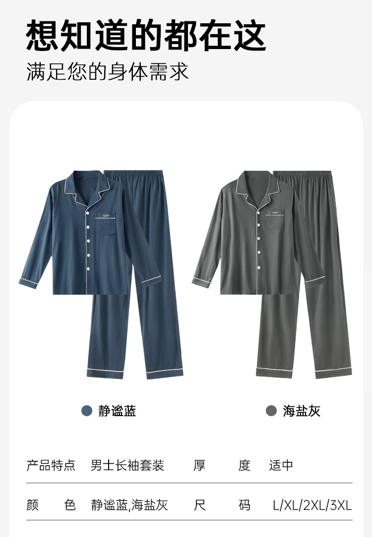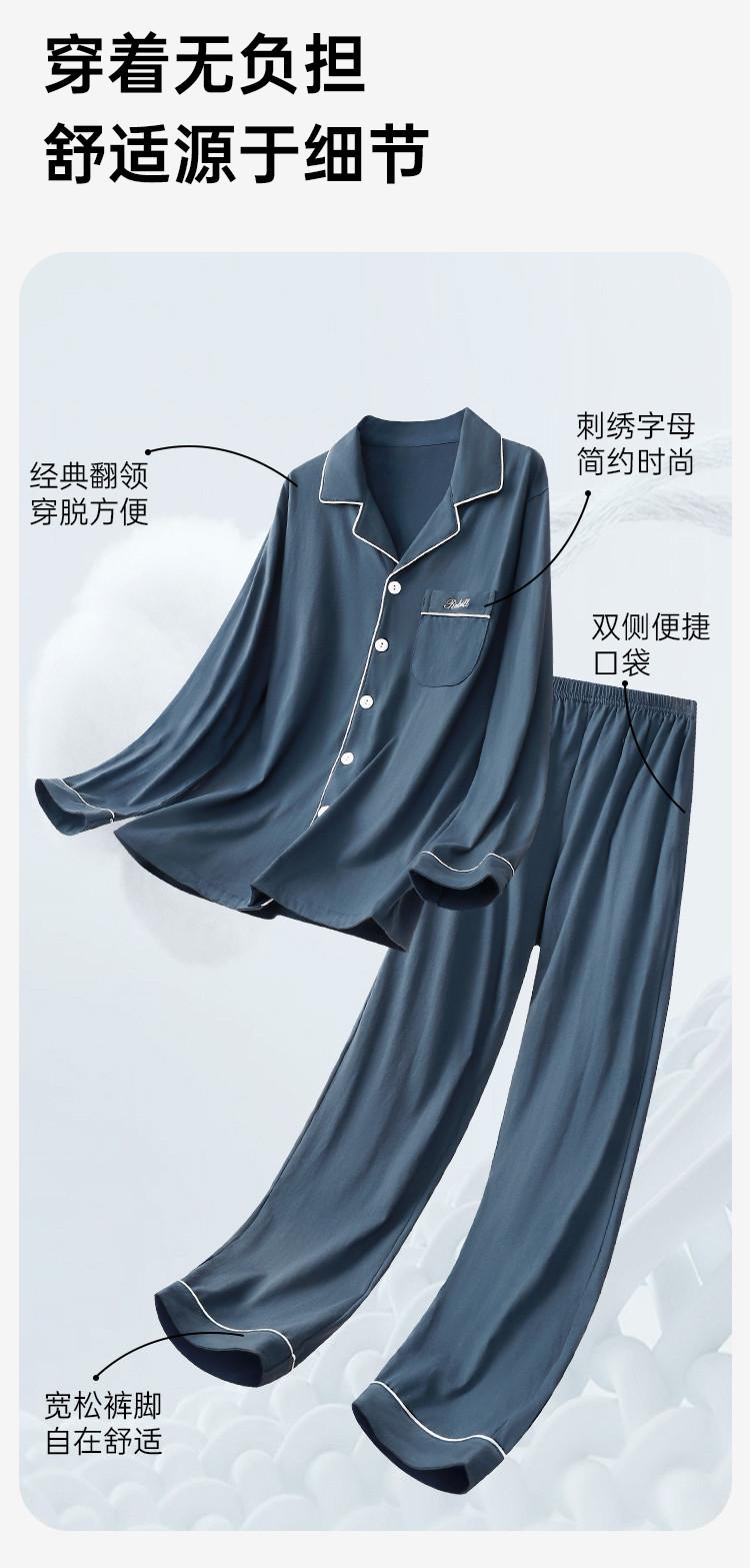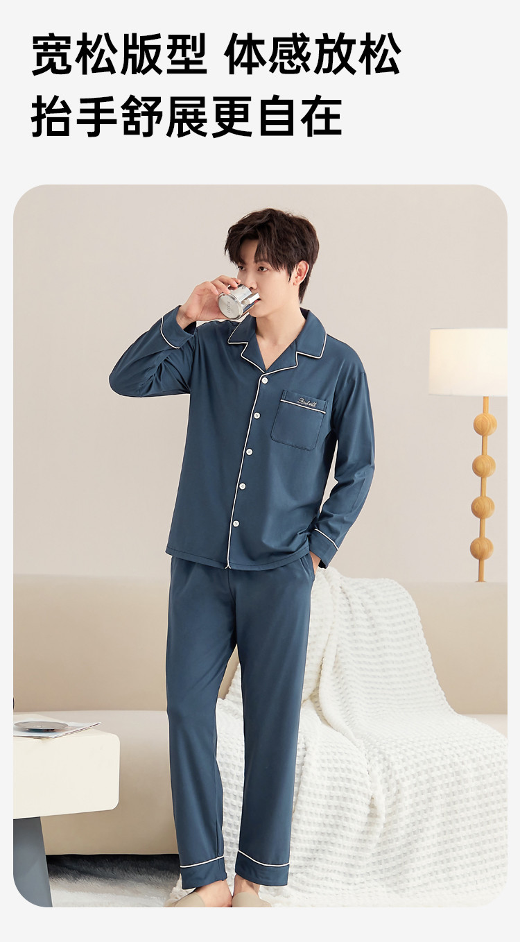 影与月白 男士家居服(VIP)【100%纯棉】经典翻领男士长袖舒适纯棉睡衣套装可外穿家居服