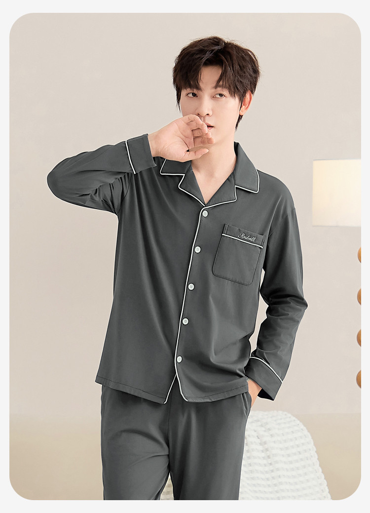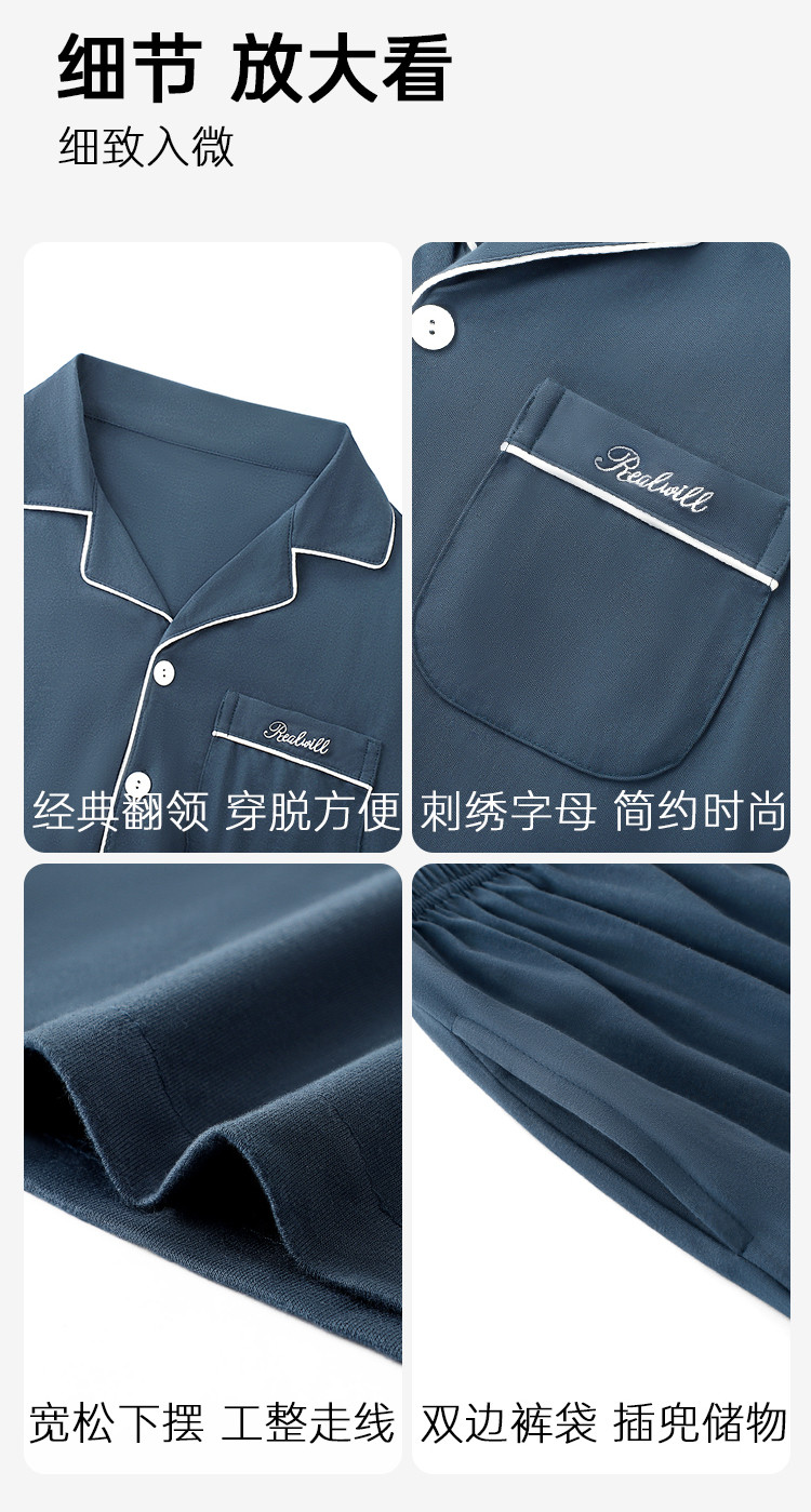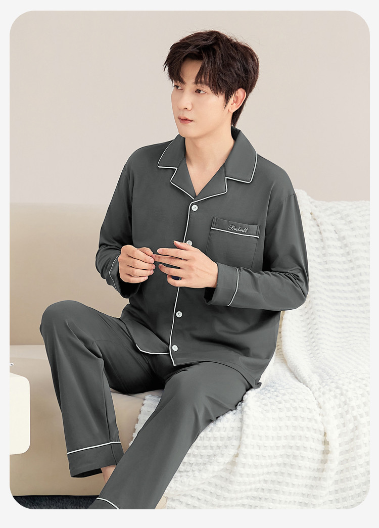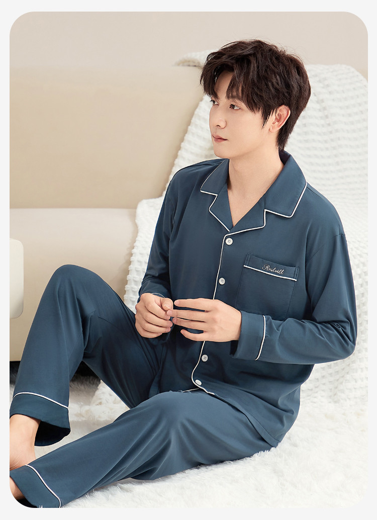 影与月白 男士家居服(VIP)【100%纯棉】经典翻领男士长袖舒适纯棉睡衣套装可外穿家居服