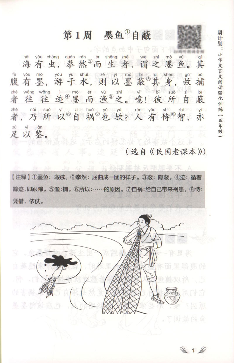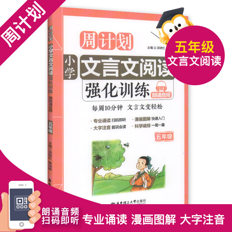 正版小学生周计划 文言文阅读强化训练 五年级/5年级 赠朗诵音频 每周10分钟文言文变轻松 专业诵读扫码即听 漫画图解快速入门