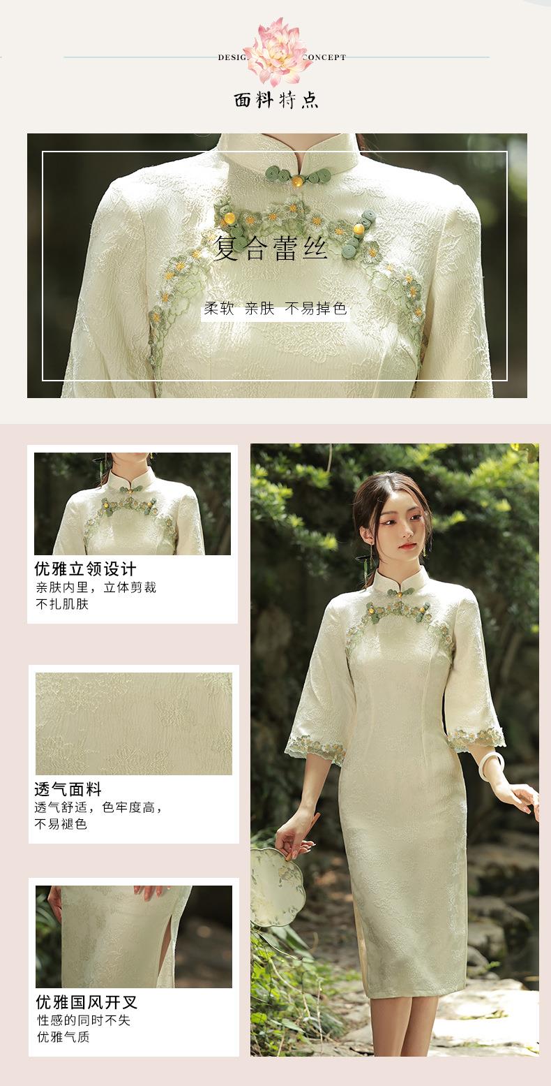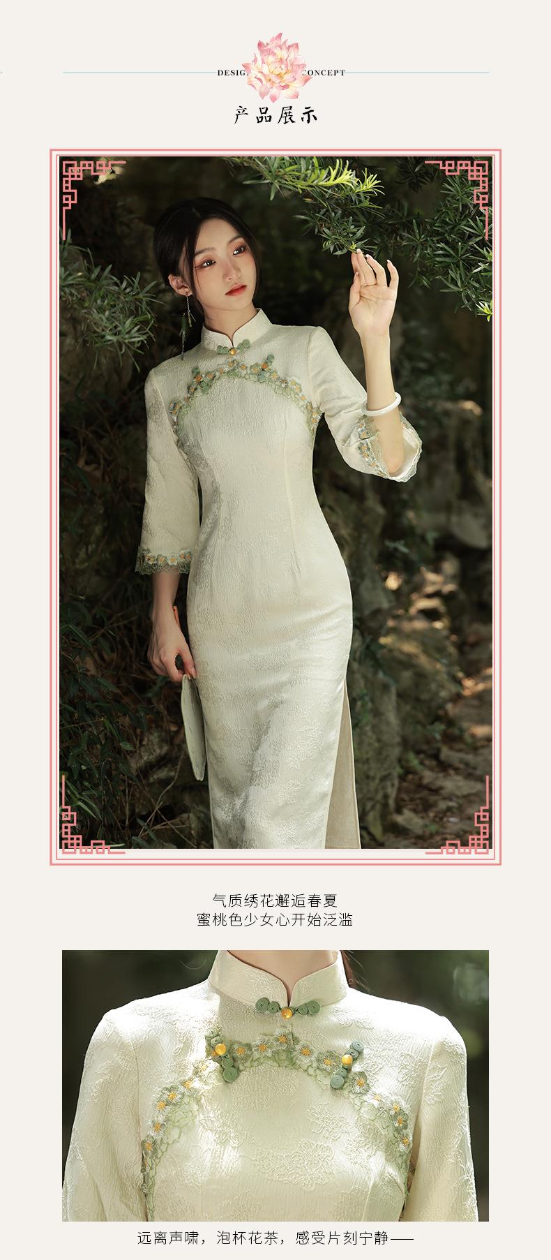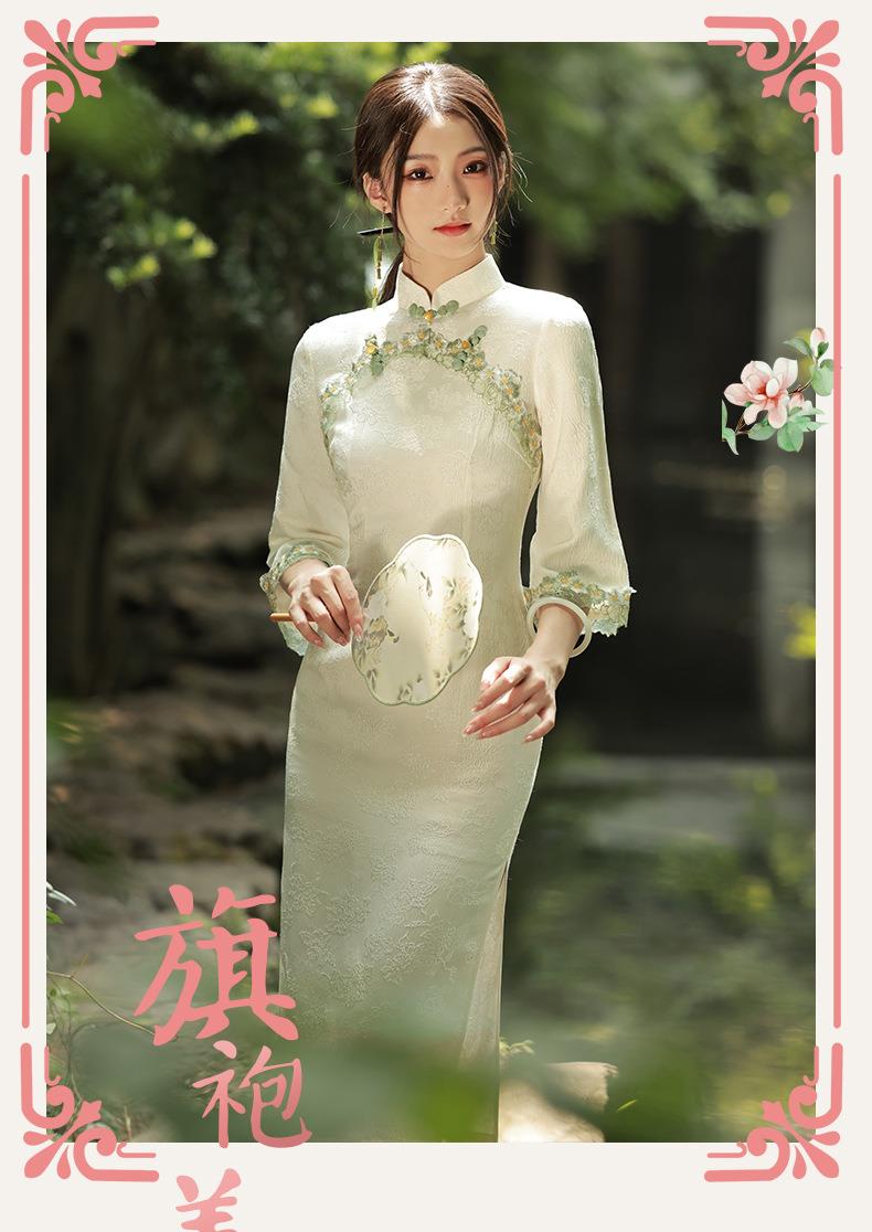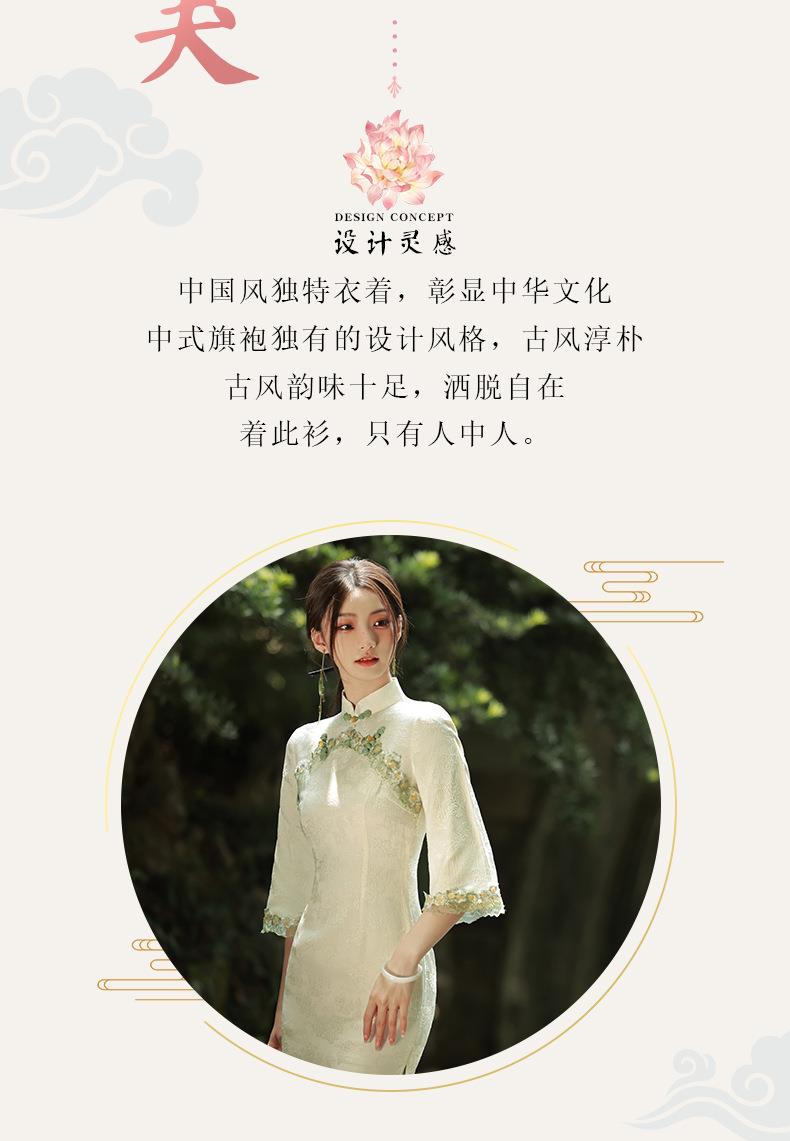 2023秋款圆襟花边倒大袖旗袍连衣裙 复古改良古法旗袍少女年轻款
