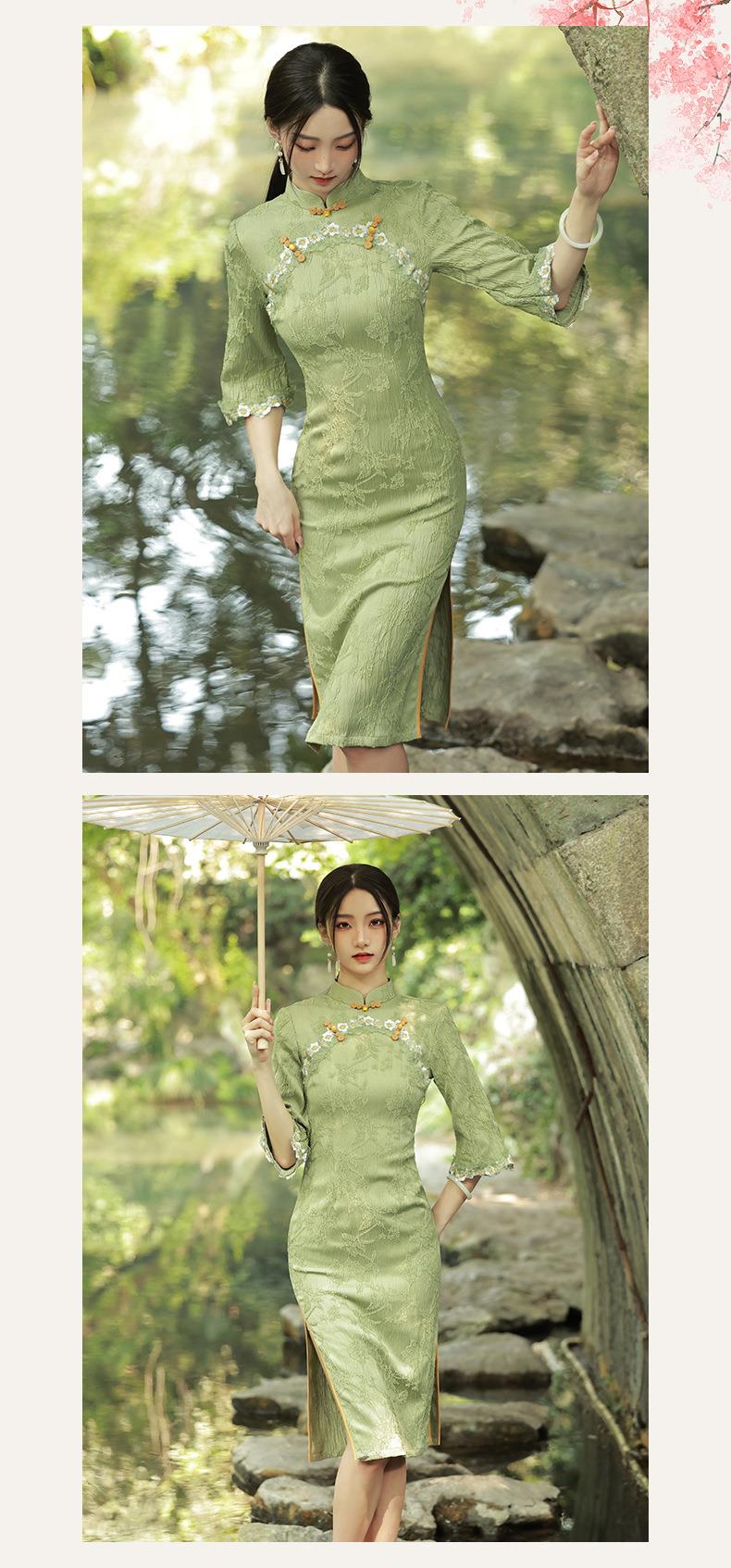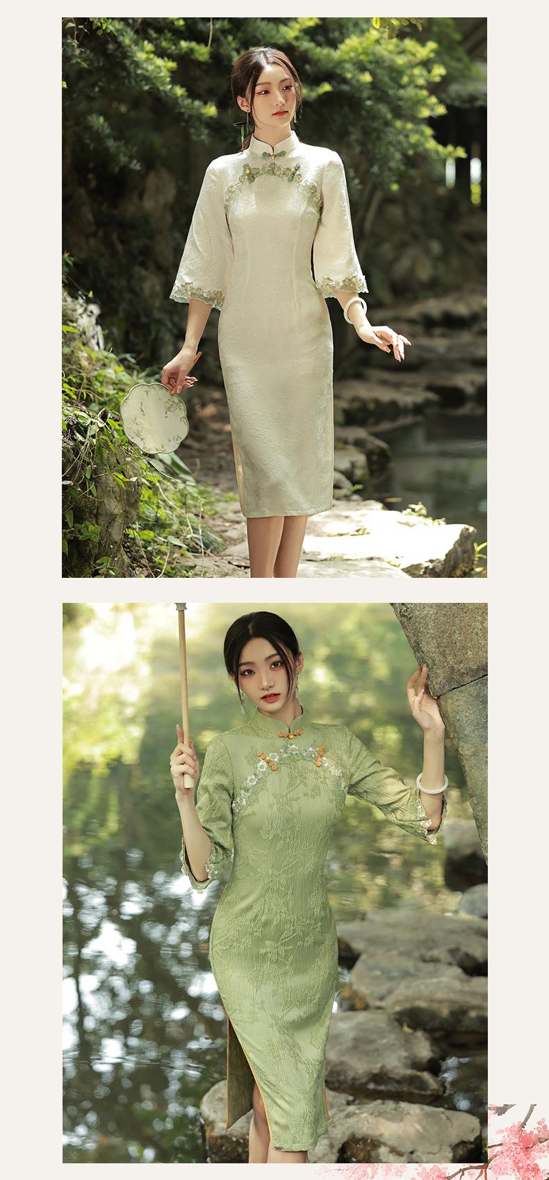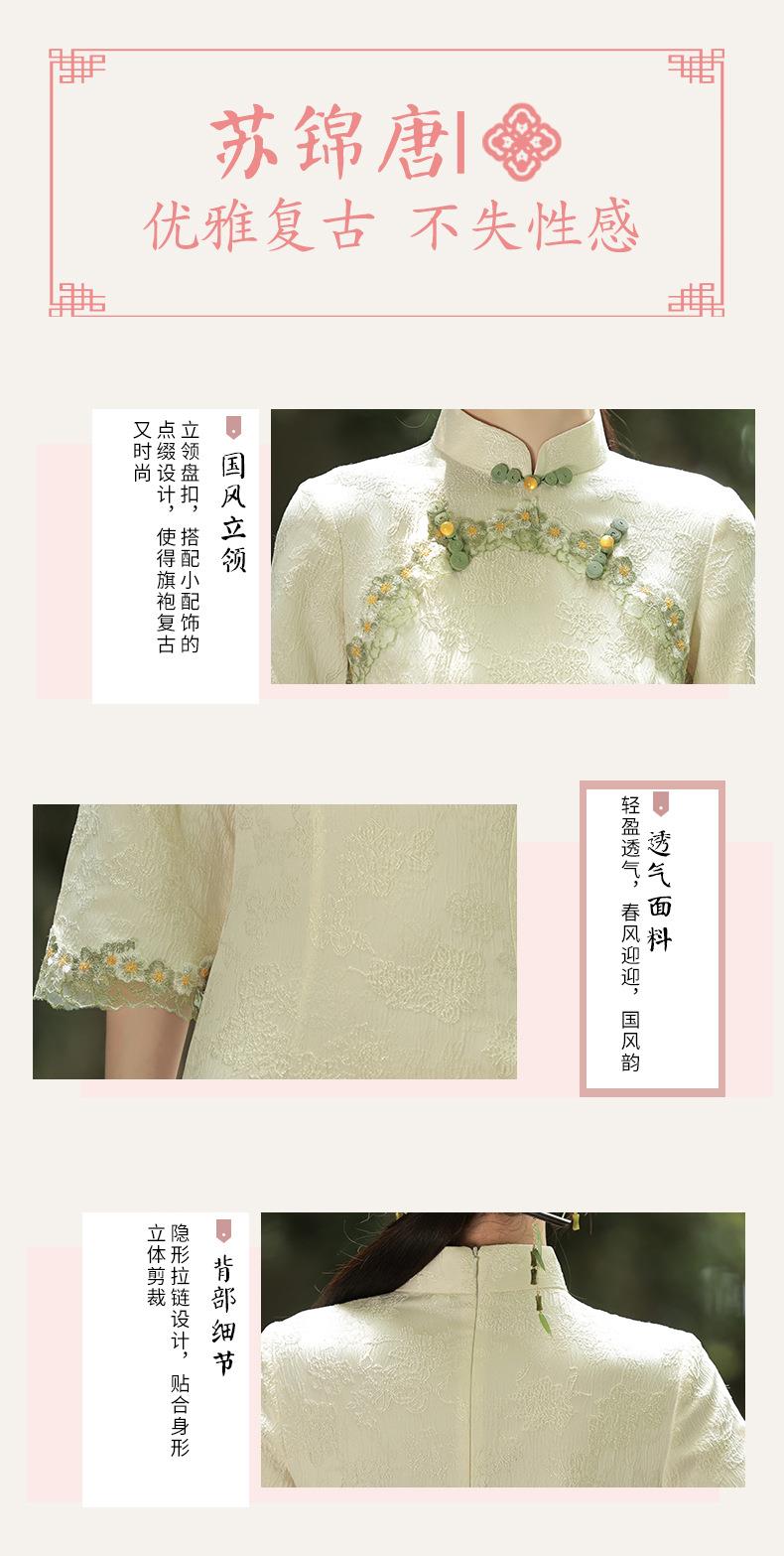 2023秋款圆襟花边倒大袖旗袍连衣裙 复古改良古法旗袍少女年轻款