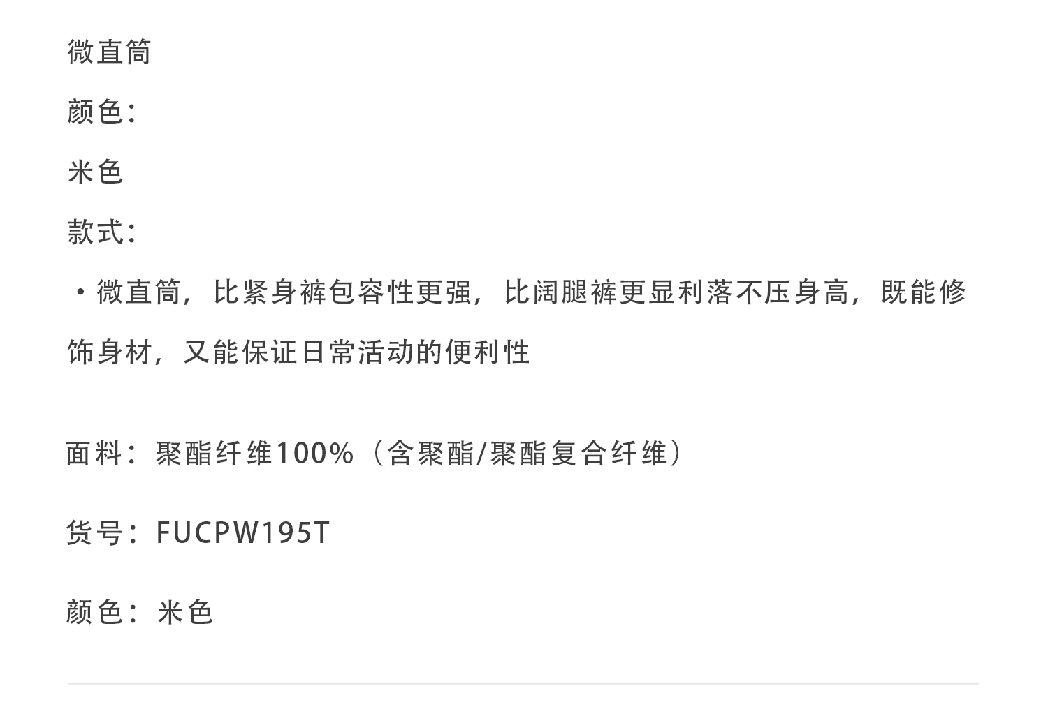 callisto米色微直筒休闲裤