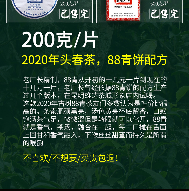 107 2020年春茶现货 普洱茶生茶饼200克古树普洱头春茶88青饼品质茶叶