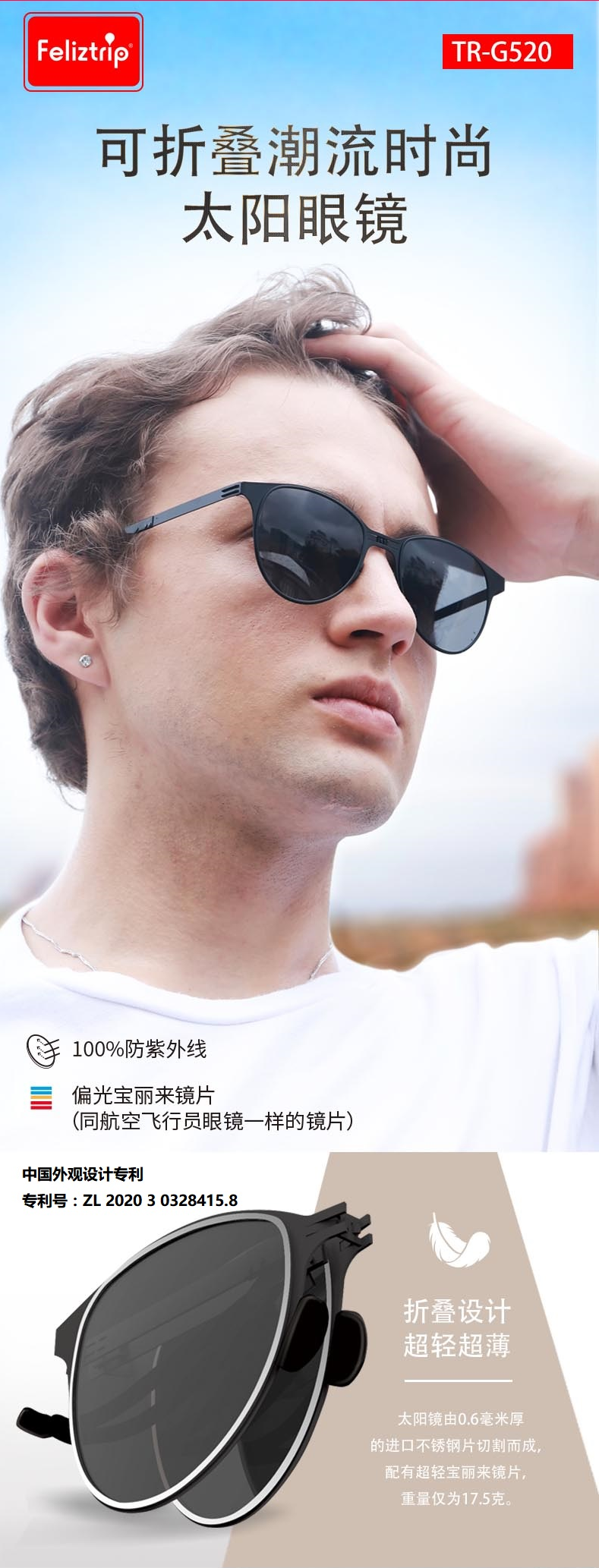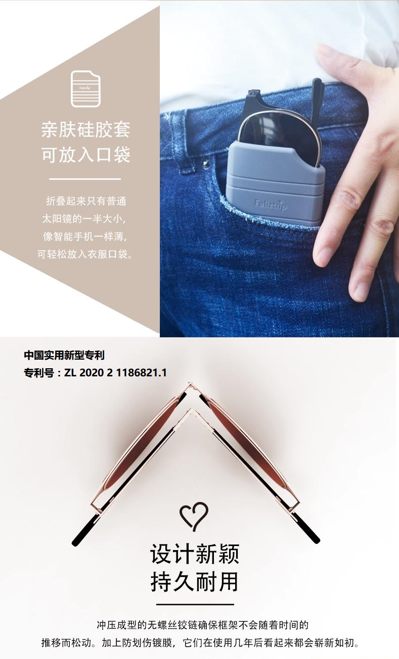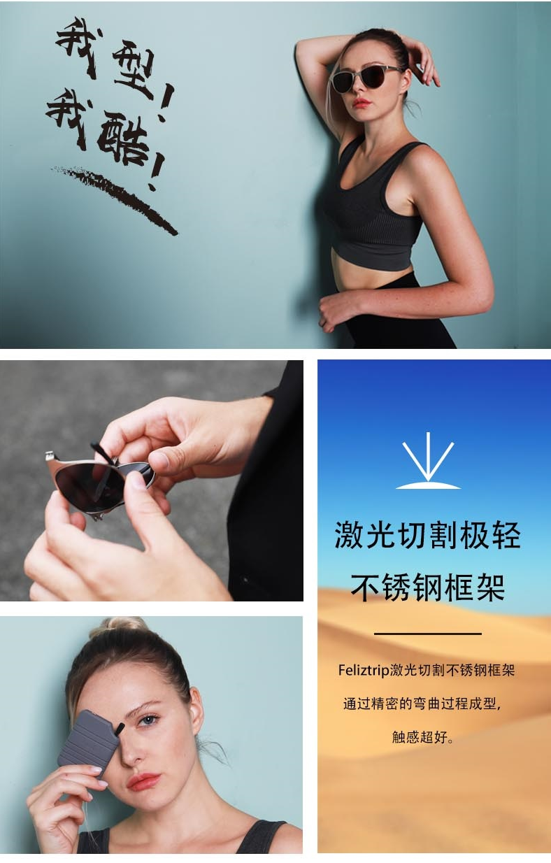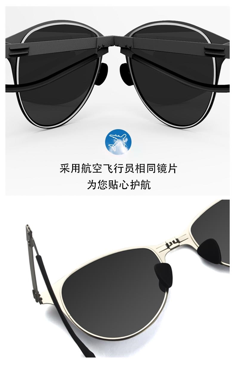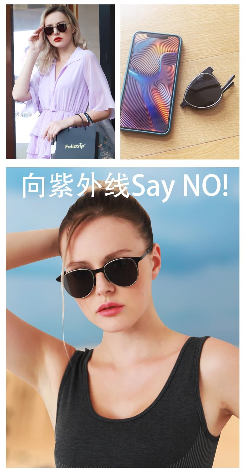 Feliztrip米斐利斯 折叠太阳眼镜墨镜超轻无螺丝铰链镜框宝丽来偏光镜片防紫外线 TR-G520