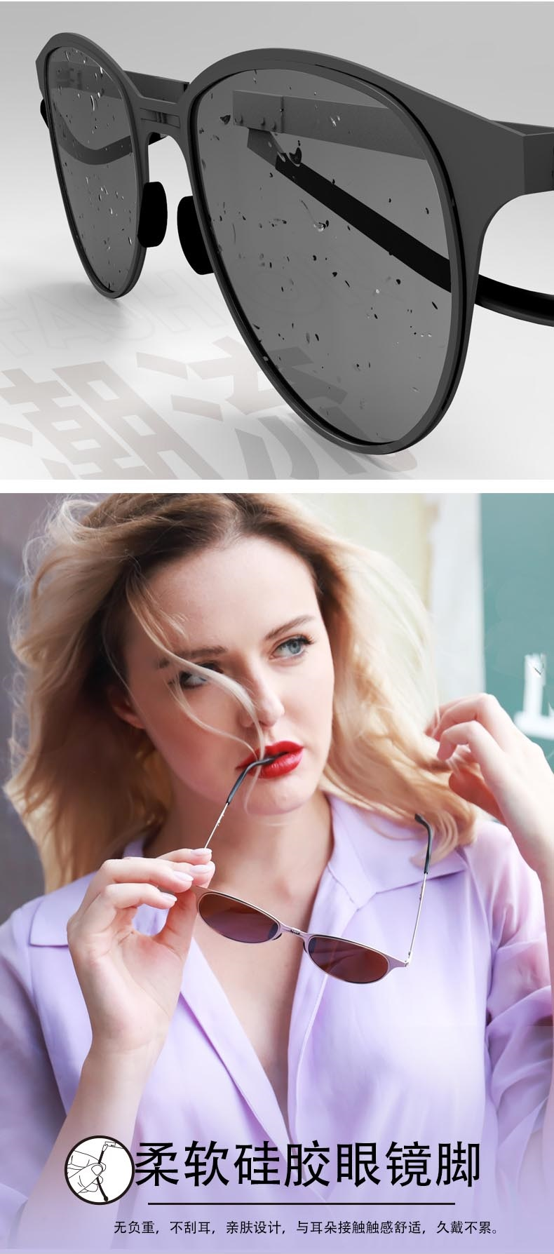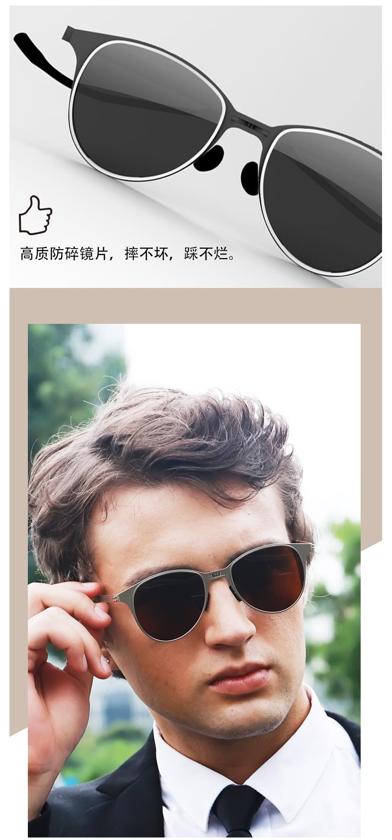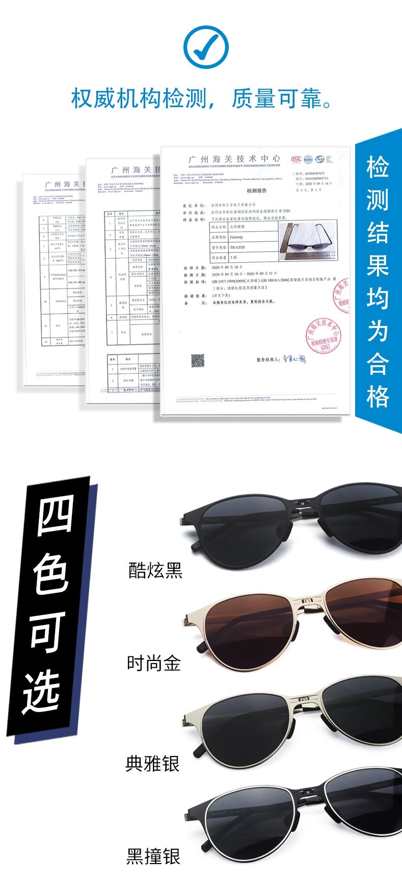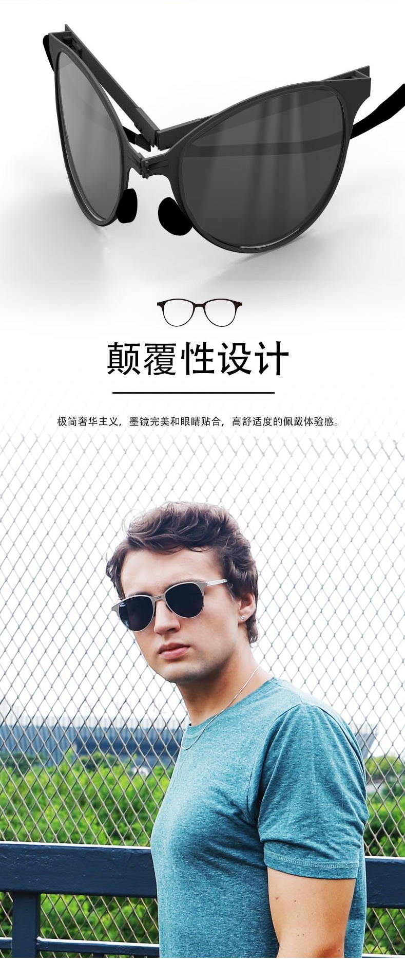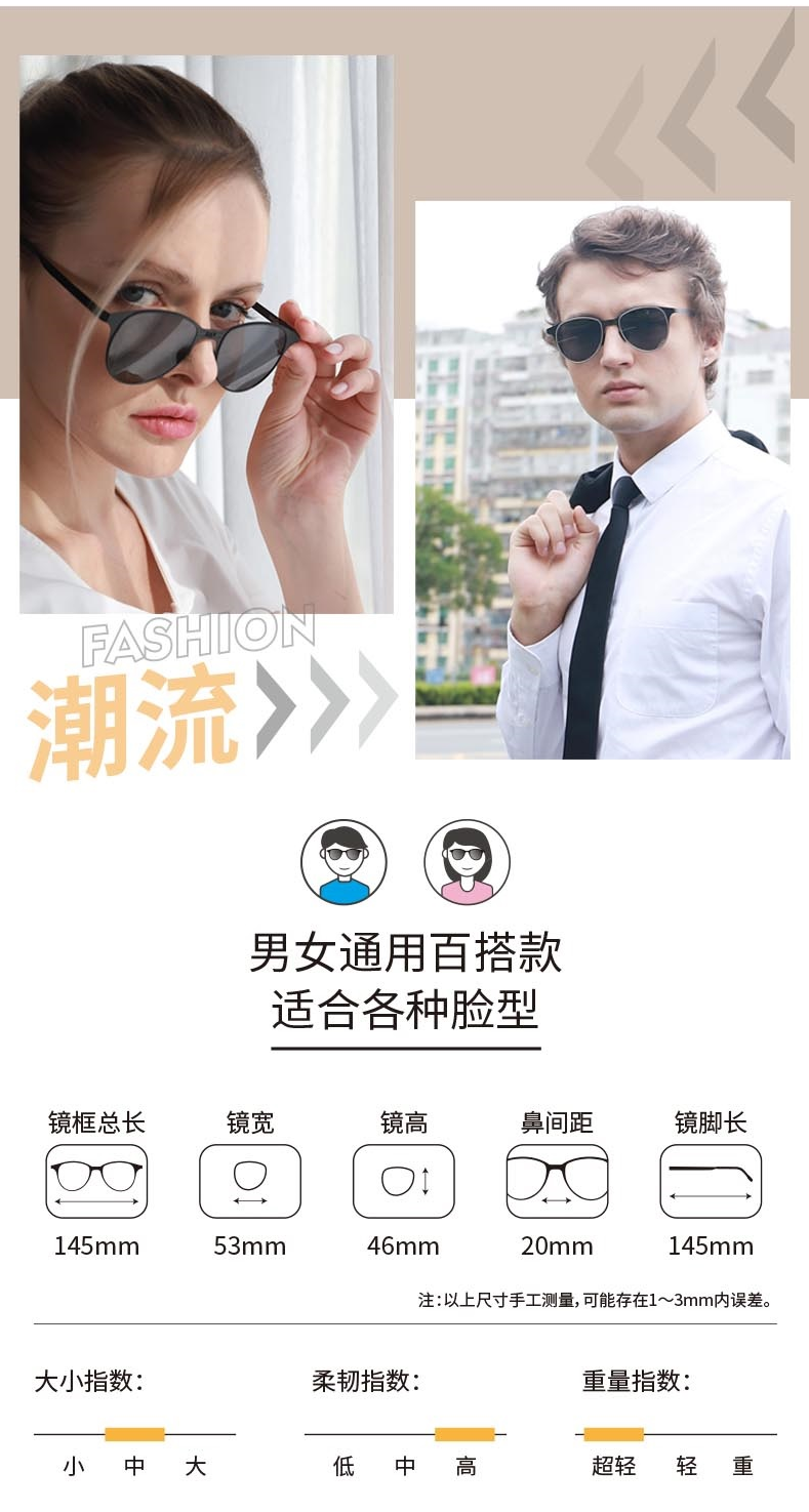 Feliztrip米斐利斯 折叠太阳眼镜墨镜超轻无螺丝铰链镜框宝丽来偏光镜片防紫外线 TR-G520