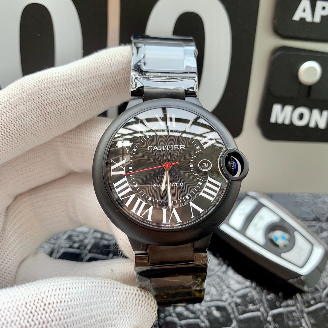 卡地亚 蓝气球系列【黑骑士】男款大号42mm 316L精钢表壳,蓝宝石镜面 搭载定制全自动机械机芯