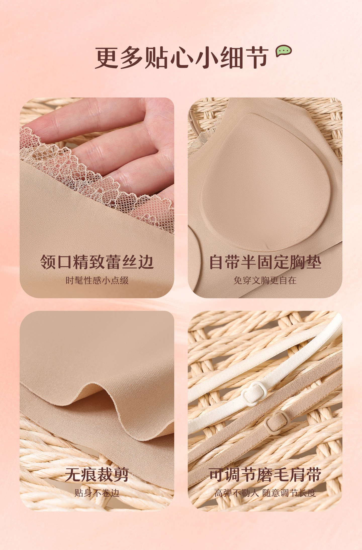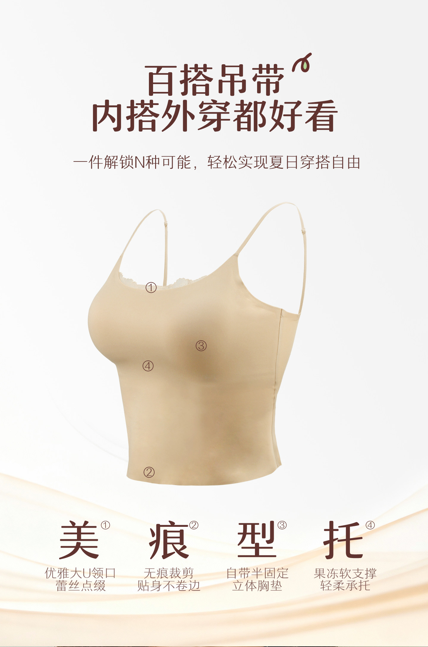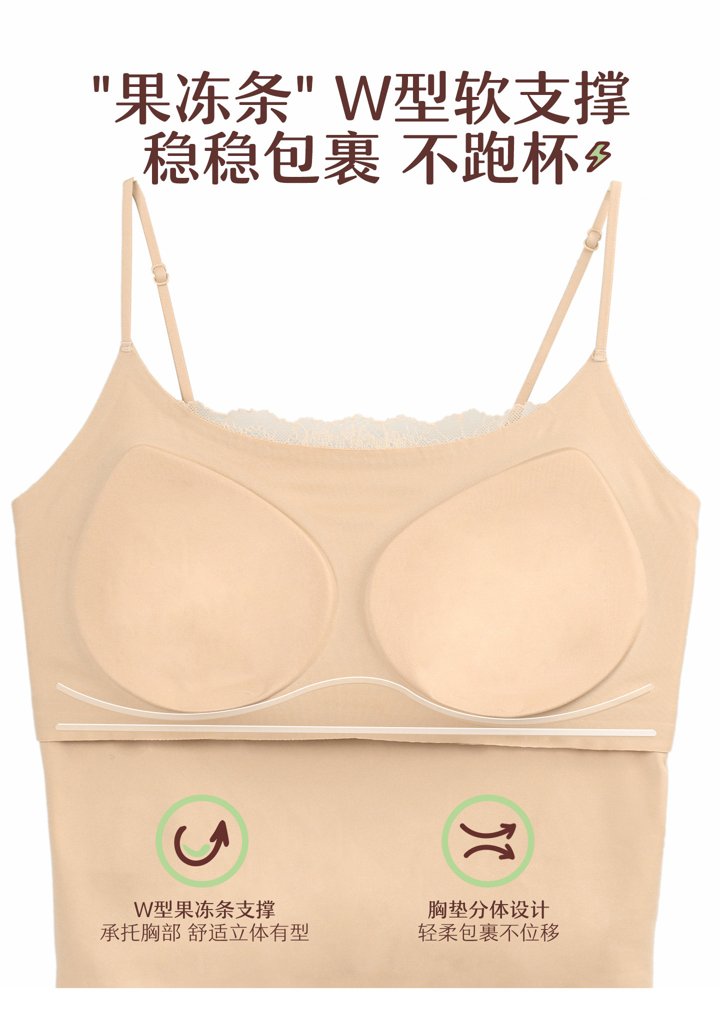 【预售7天】无痕百搭“果冻背心” 蕾丝边小吊带 内搭外穿自带Bra 完美上托 轻薄无痕裸感舒适修身显瘦美肩薄背