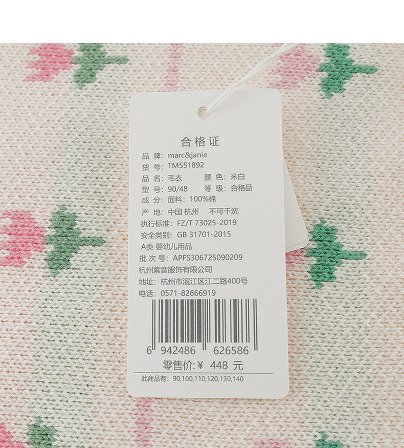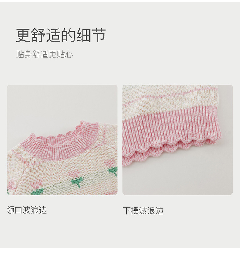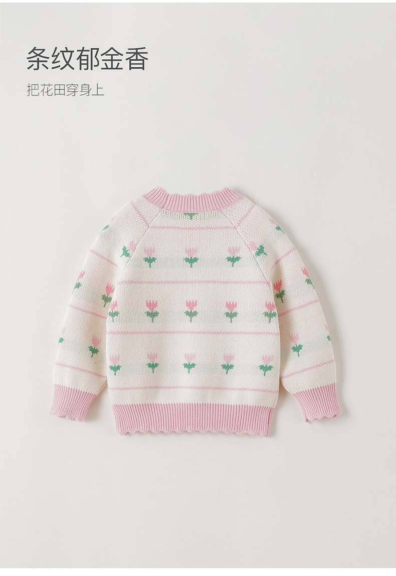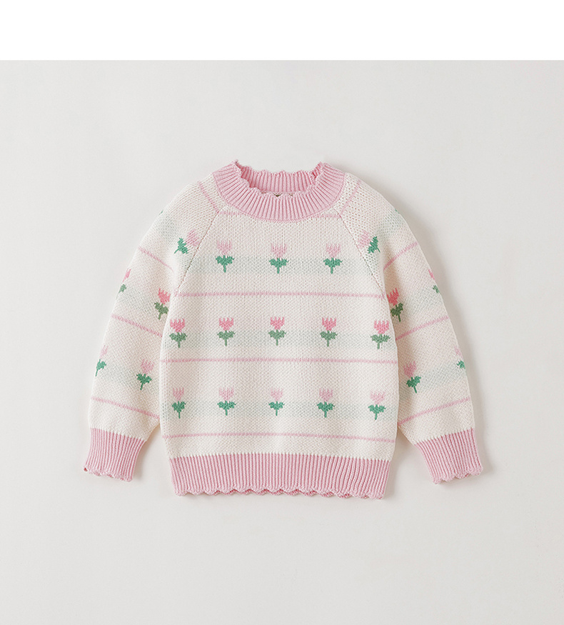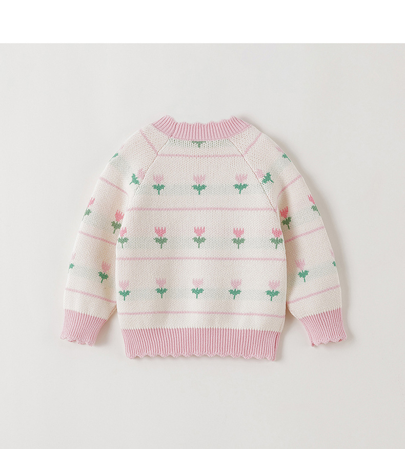 马克珍妮女童郁金香提花纯棉针织毛衣2025年秋冬新款551892