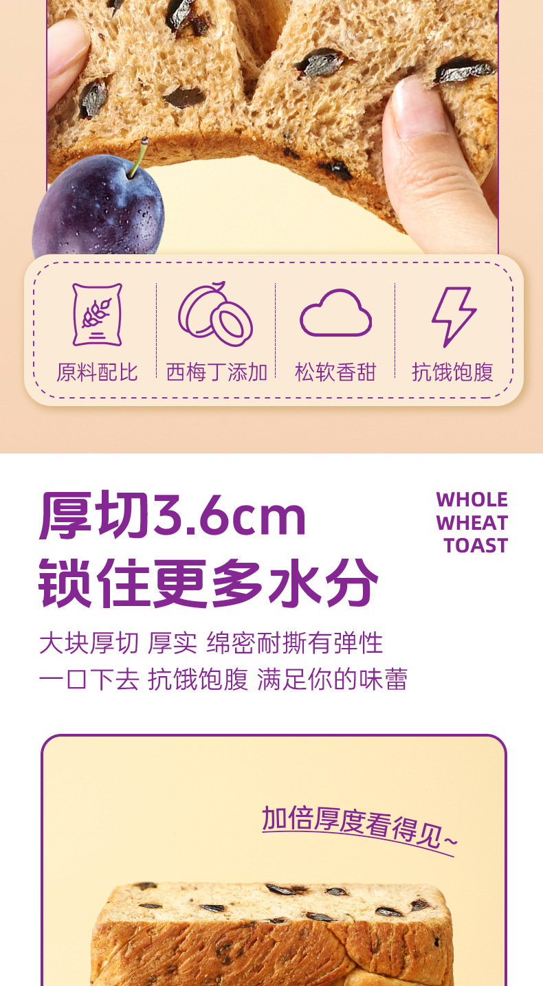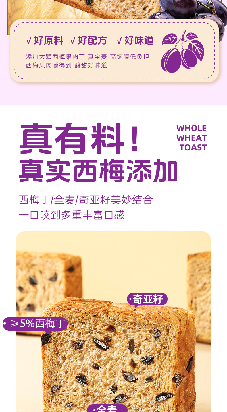 【商超同款❗️西梅全麦吐司】麦香醇厚与西梅酸甜完美融合,甜而不腻,果香清新,即使单吃也不会觉得枯燥,西梅奇亚籽全麦厚切吐司面包学生早餐健康饱腹零食品整箱厂家批发