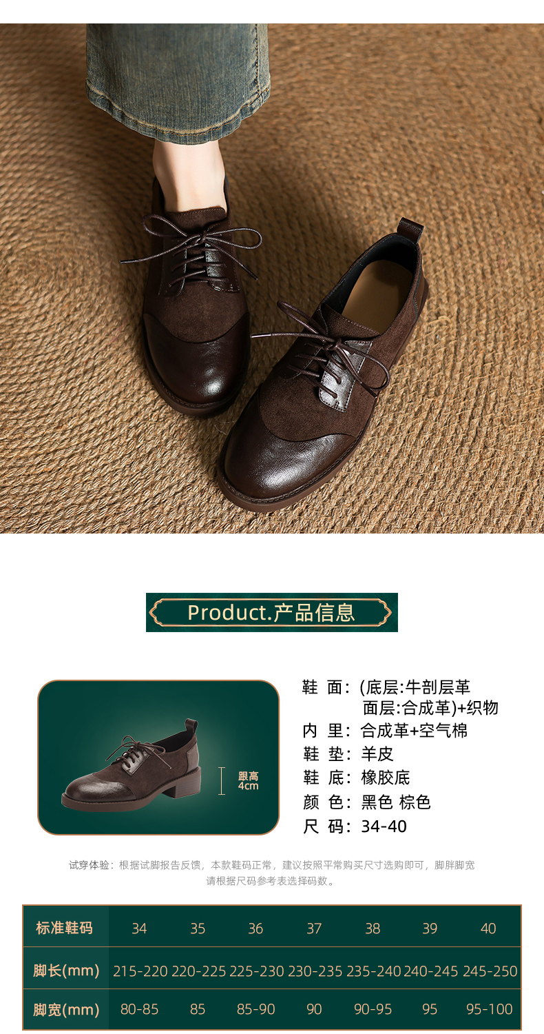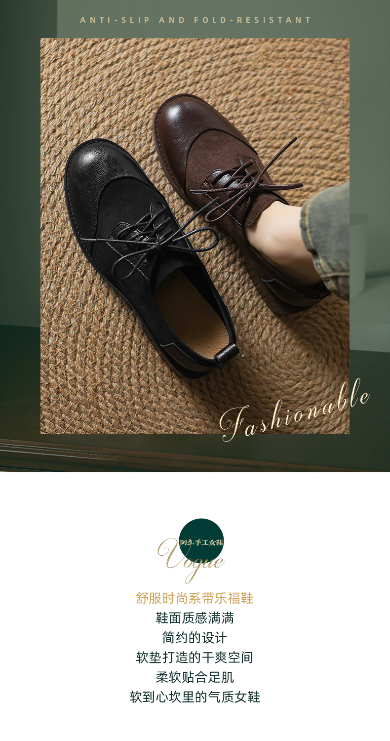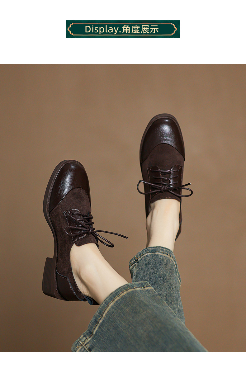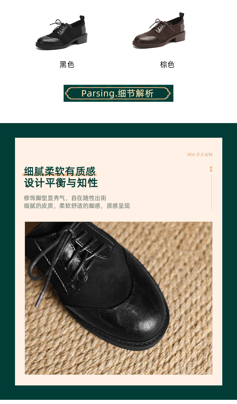阿么手工女鞋英伦风拼接系带休闲皮鞋百搭软底不累脚春季新款4CM