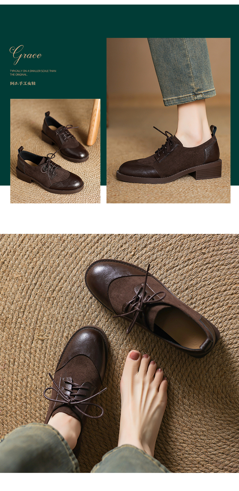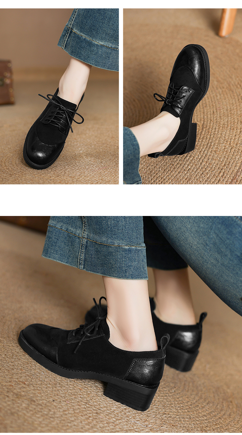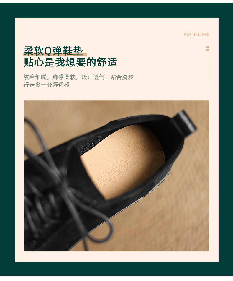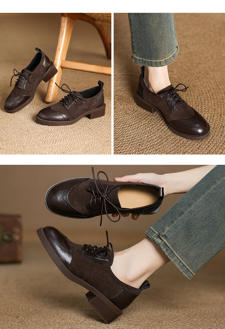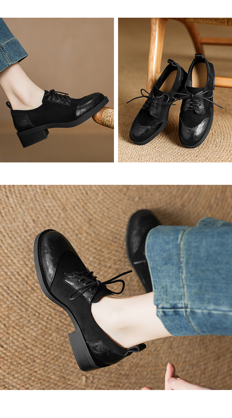 阿么手工女鞋英伦风拼接系带休闲皮鞋百搭软底不累脚春季新款4CM