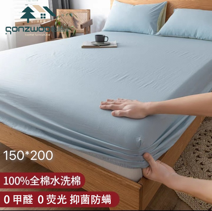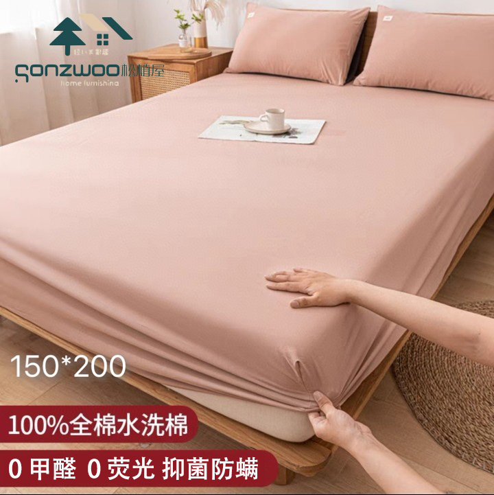 松植屋全棉水洗床笠(全新升级款) 水洗棉固定防滑床罩 席梦思防尘套1.5米/1.8米 抑菌防螨