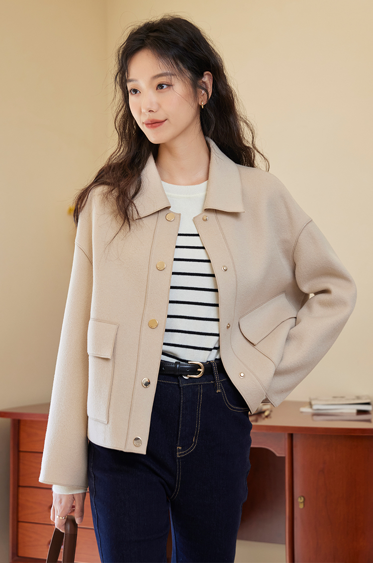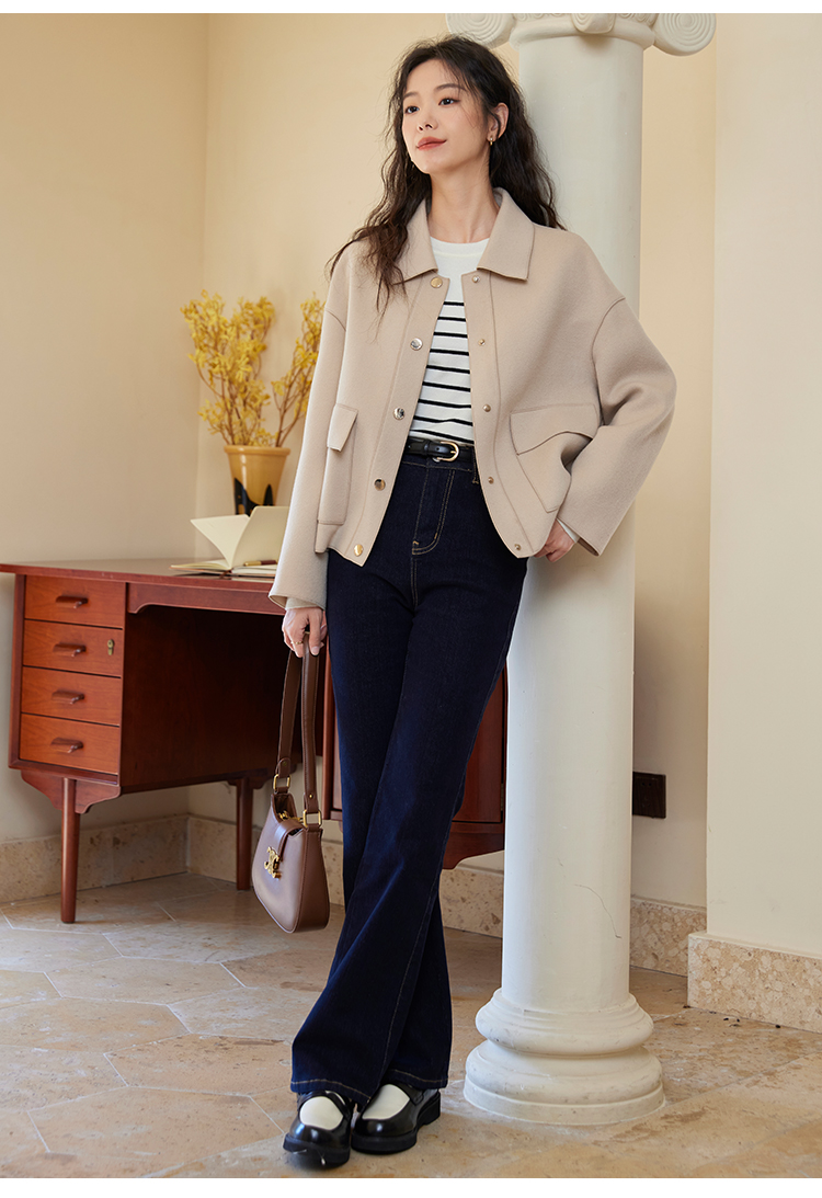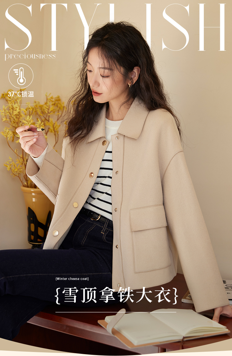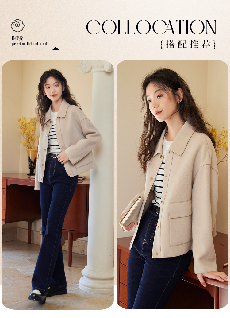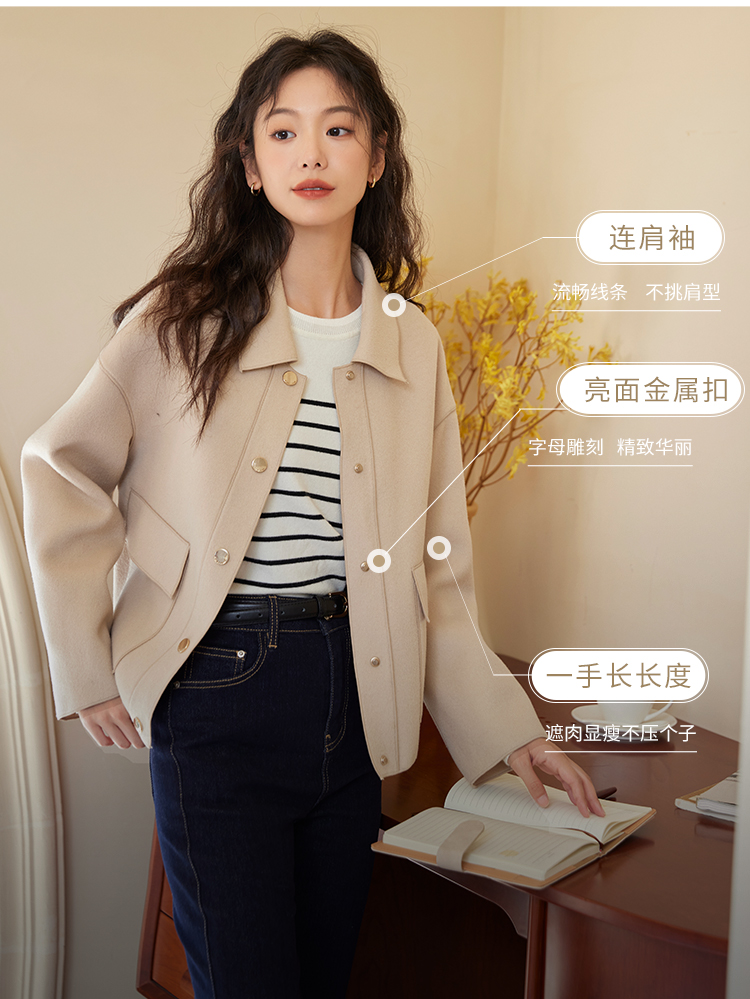 【年终特卖】熙世界双面羊绒大衣女秋冬2025年新款100.%羊毛小个子短款毛呢外套