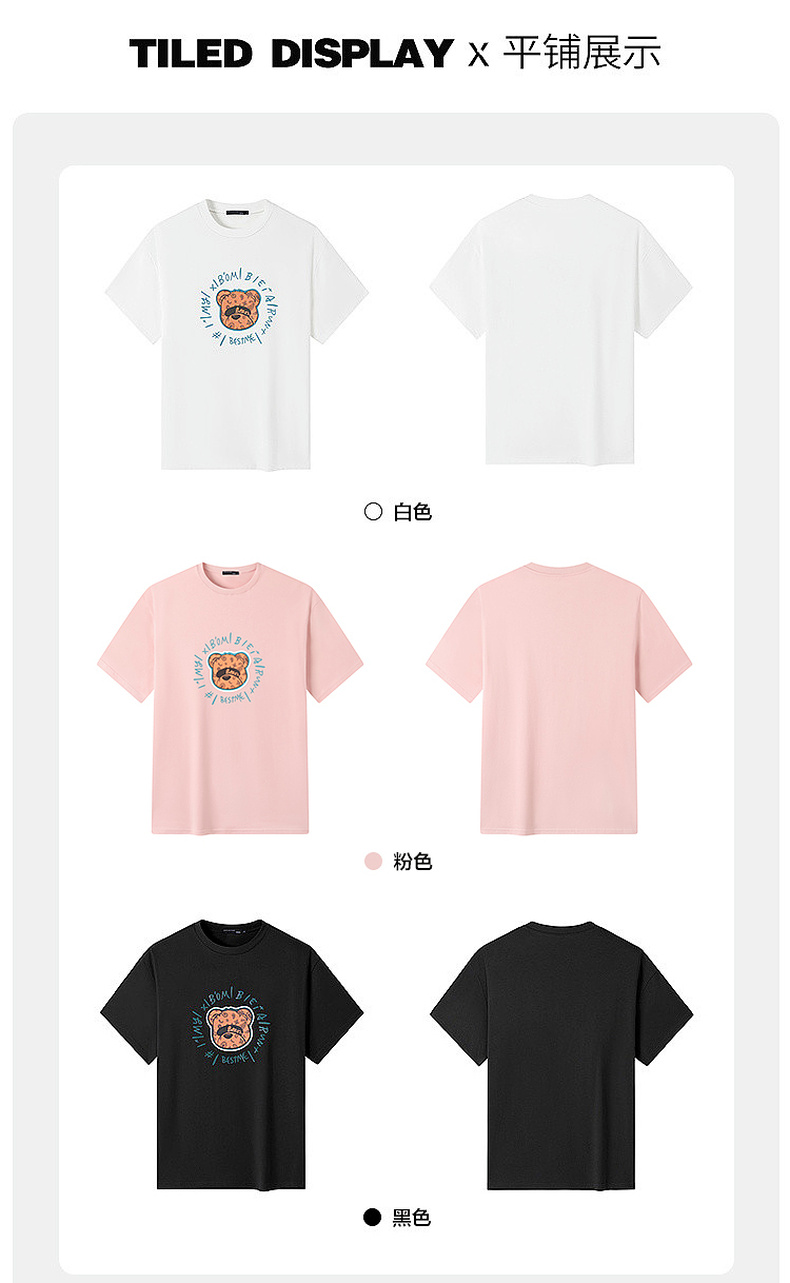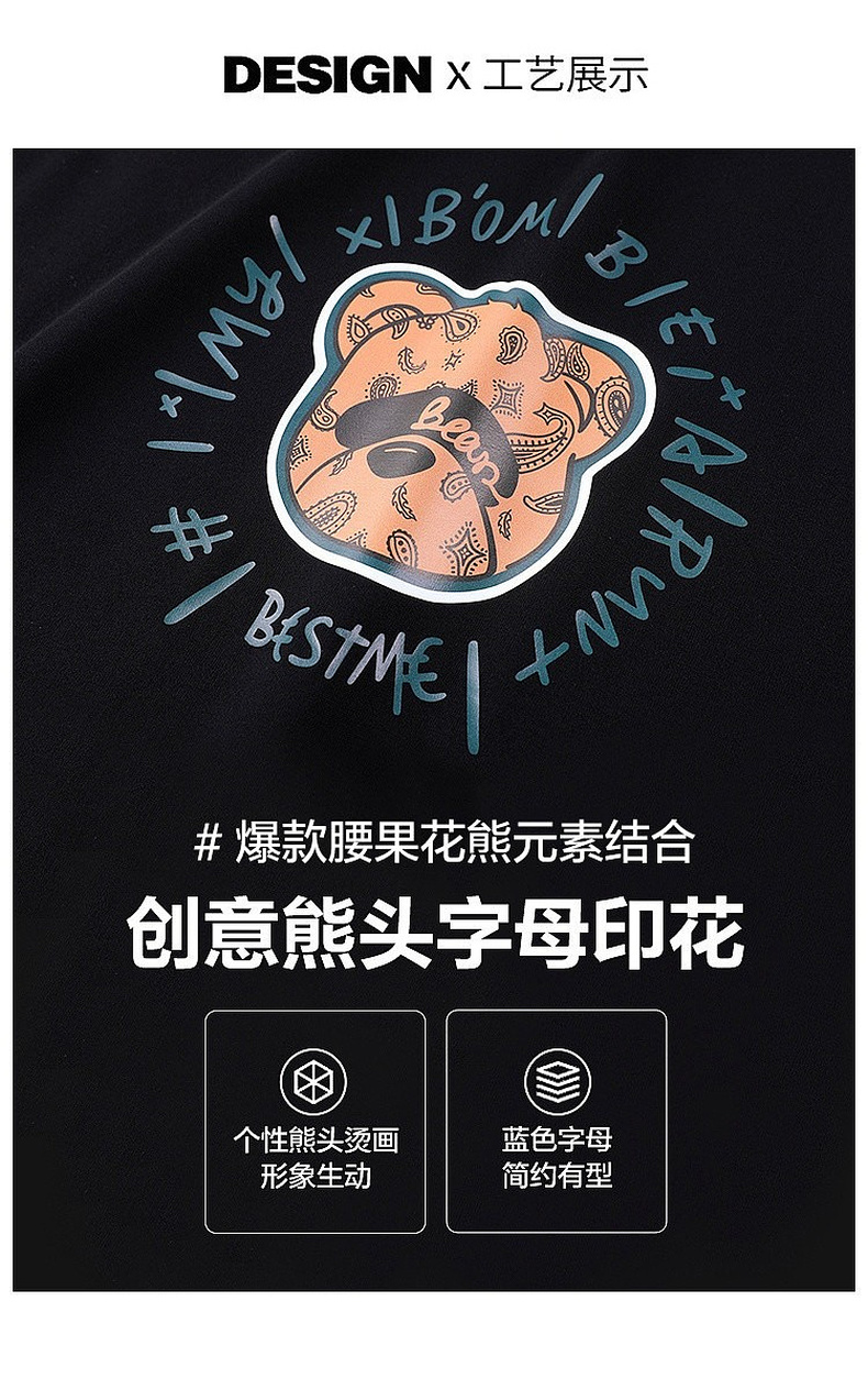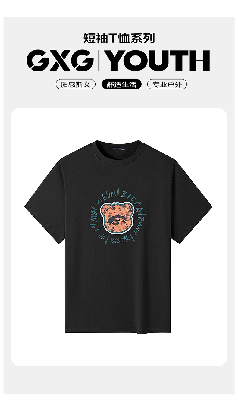GXG男装【卡通小熊】夏季时尚百搭男女同款腰果花熊圆领短袖t恤K&C