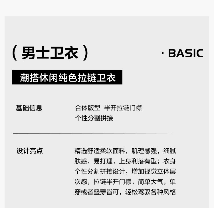 gxgjeans 男装25春款设计感拉链半开襟卫衣纯色休闲百搭套头男士打底衫上衣K&C