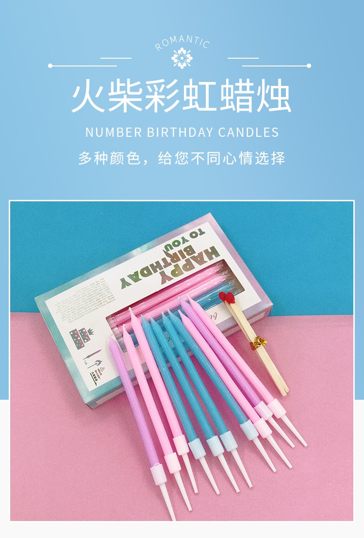 带火柴 10支装 网红生日蜡烛 装饰彩虹蜡烘焙蛋糕彩色生日铅笔蜡烛