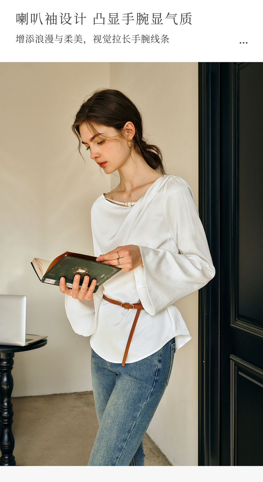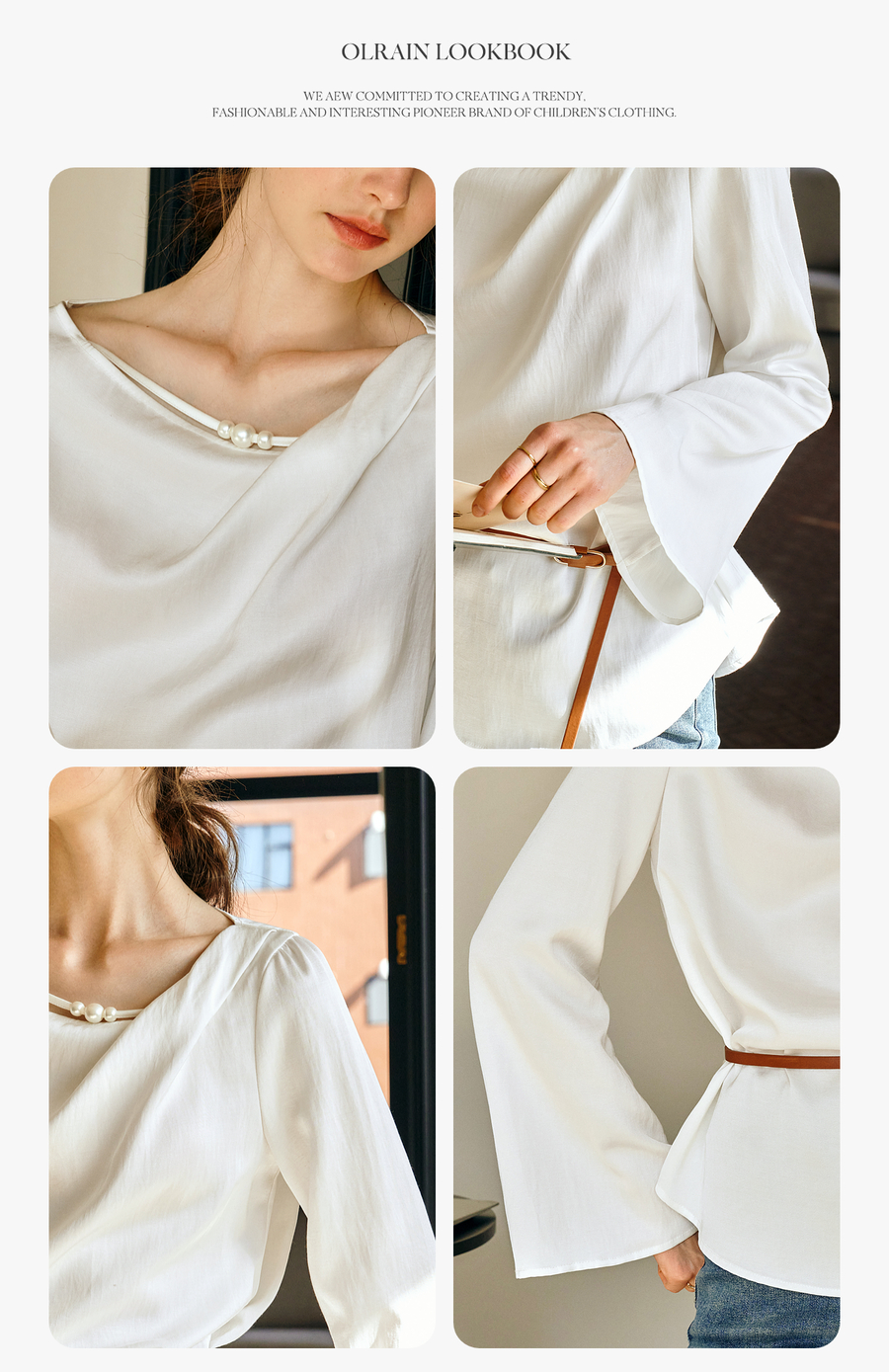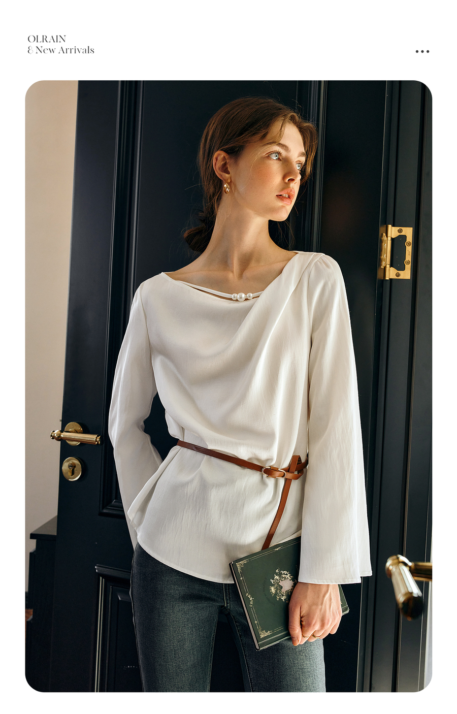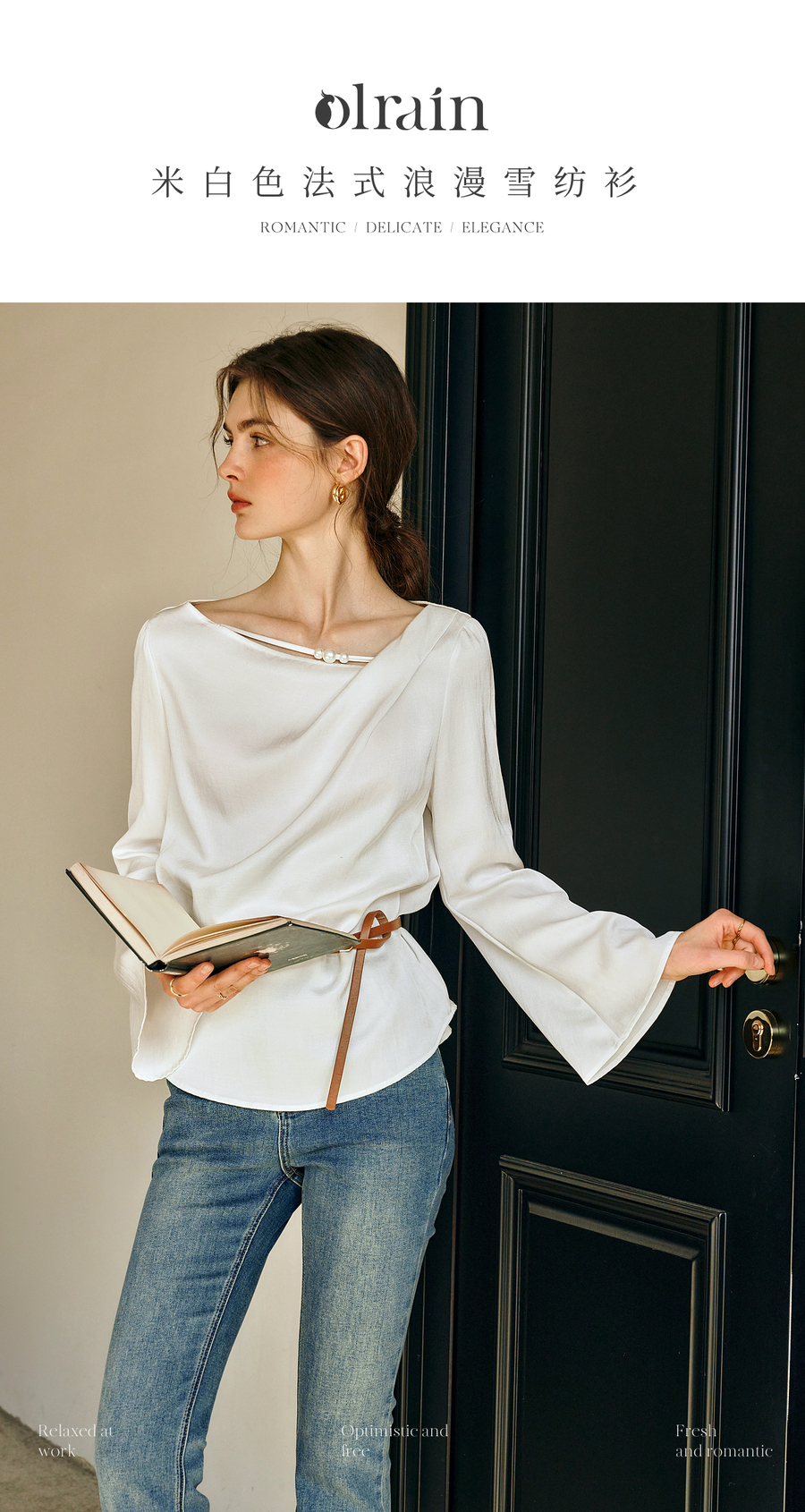 OLrain欧芮儿法式白色衬衫女春季2025年新款时尚设计感浪漫雪纺衫