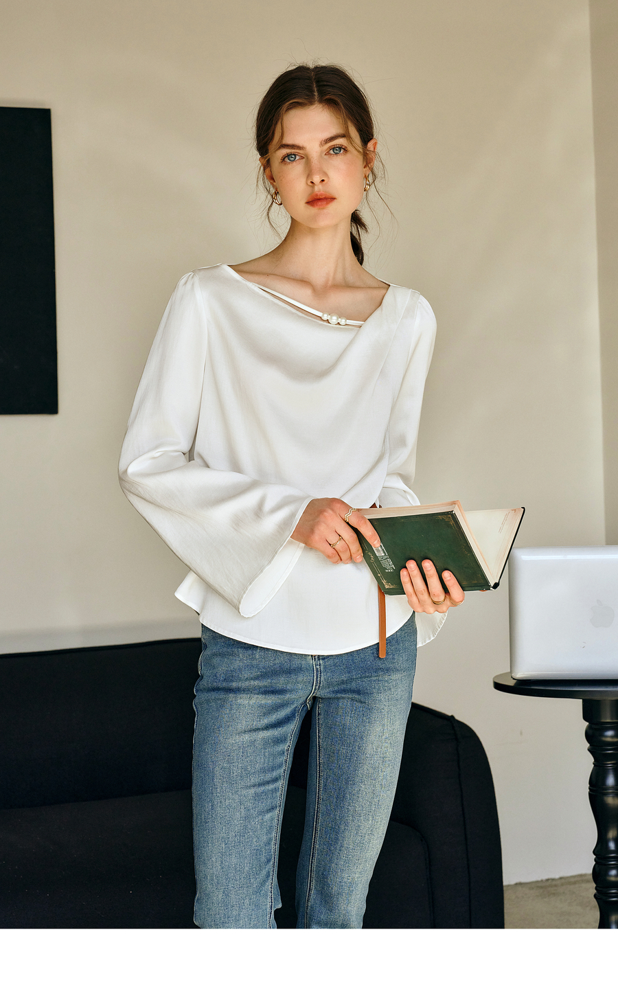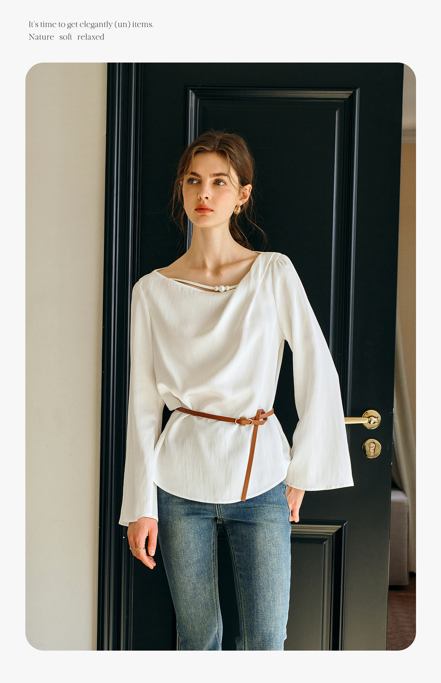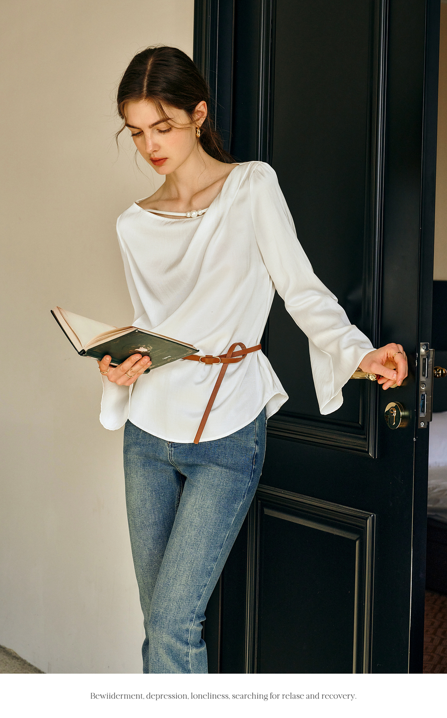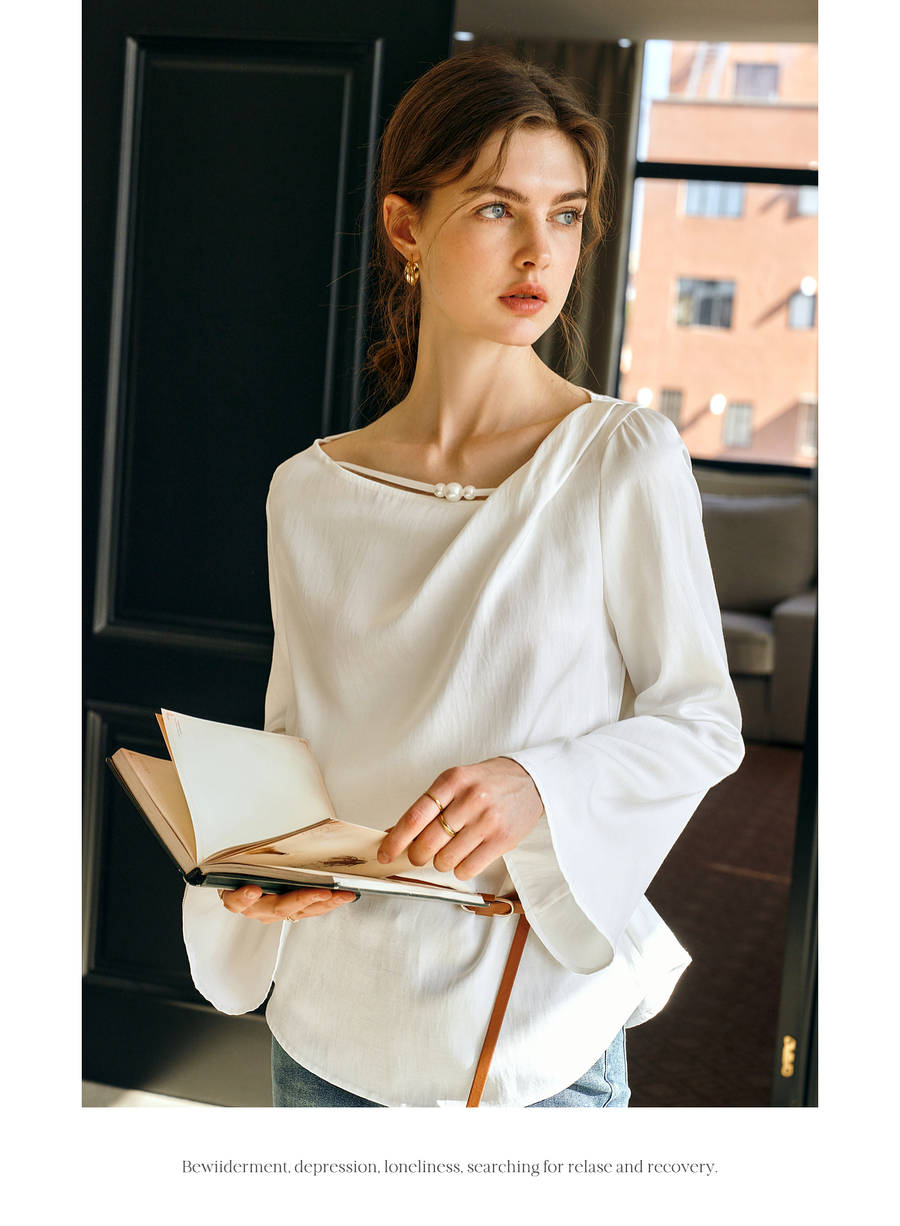 OLrain欧芮儿法式白色衬衫女春季2025年新款时尚设计感浪漫雪纺衫