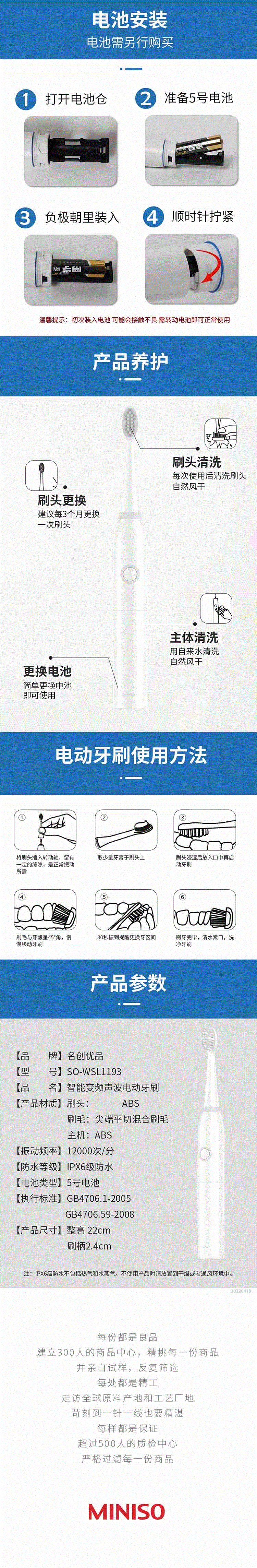 【分仓直发包邮】MINISO智能变频声波电动牙刷 SO-WSL1193