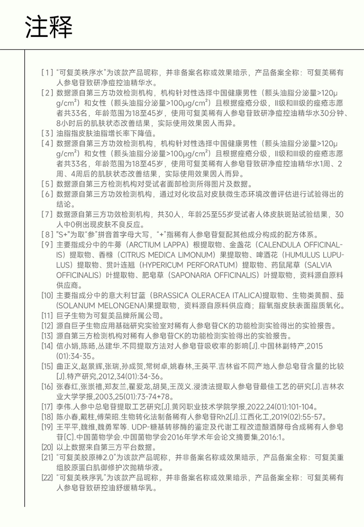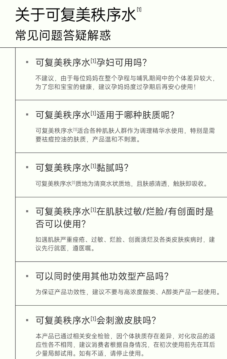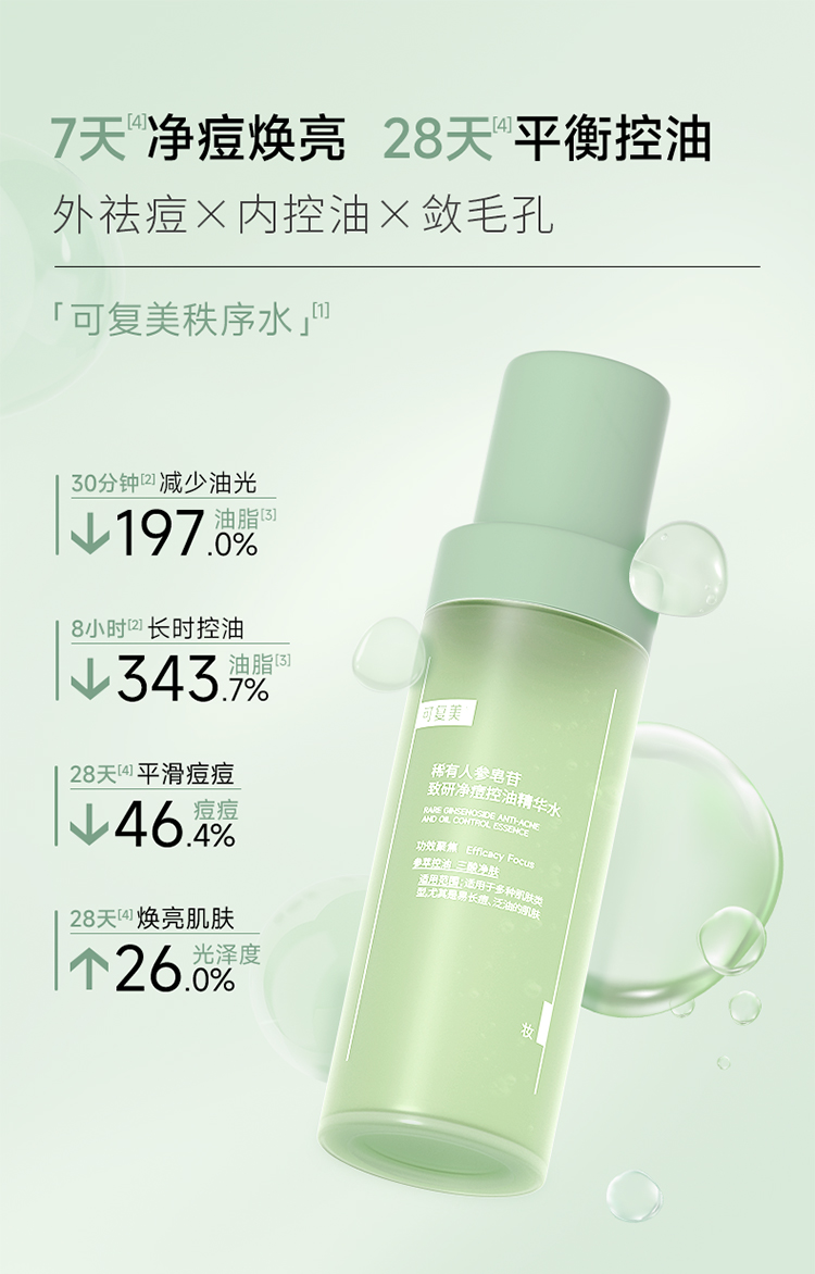 【可复美秩序水】可复美稀有人参皂苷致研净痘控油精华水 150ml/瓶/盒