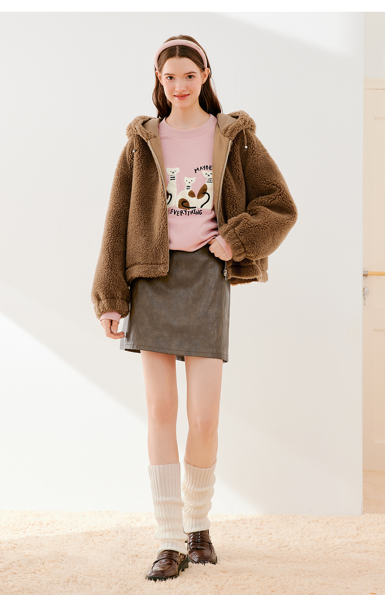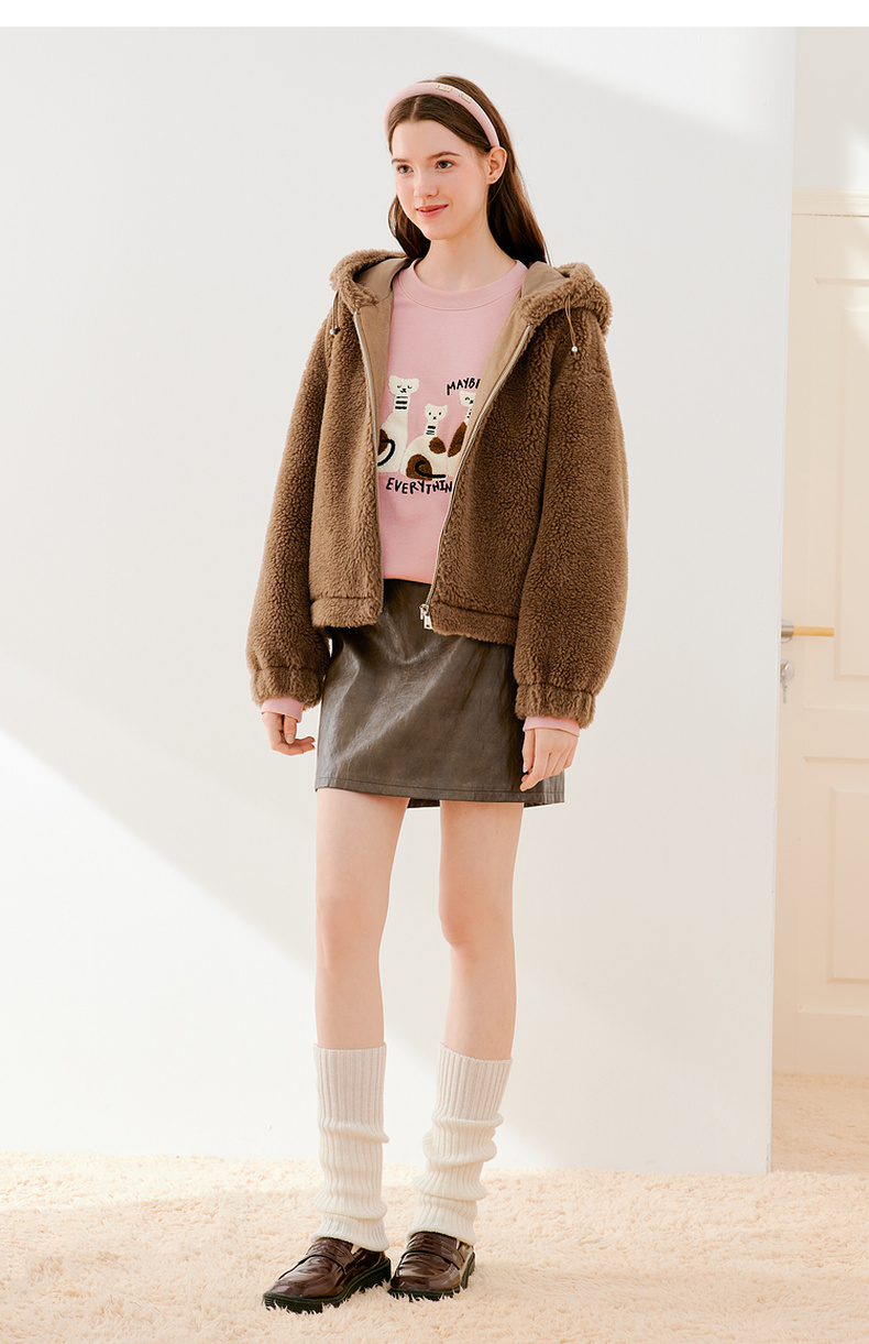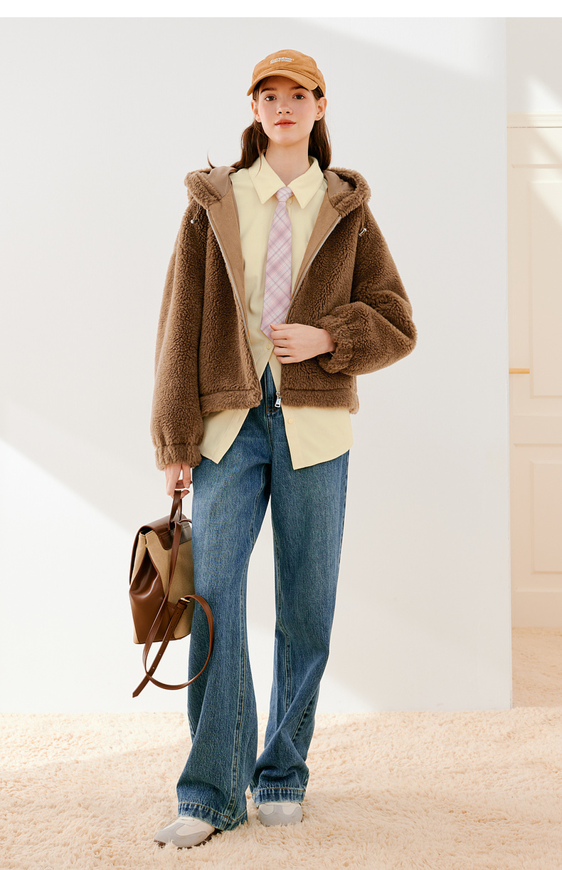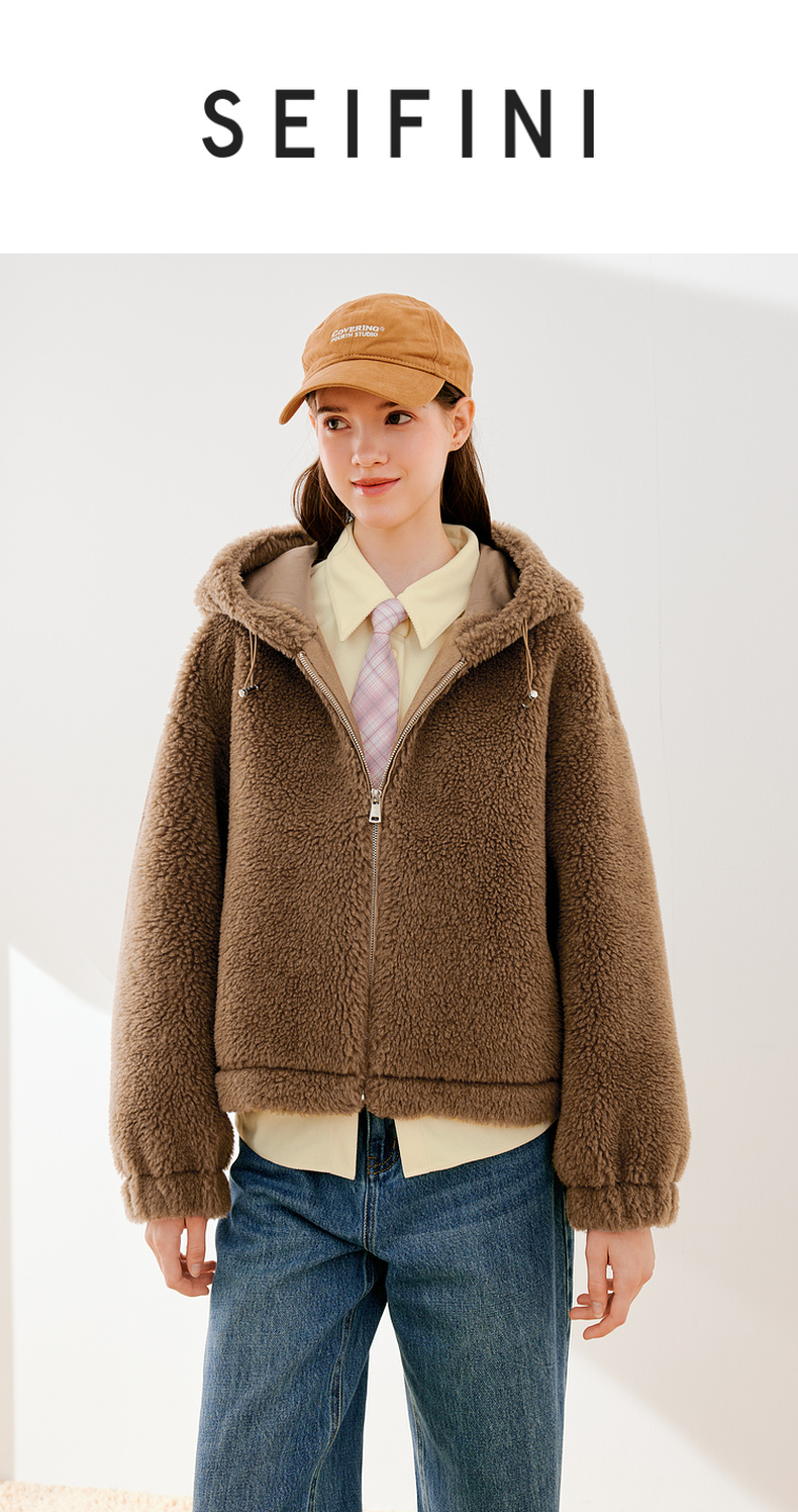 【严选】诗凡黎冬可调节下摆简约大方毛毛外套SEB110621