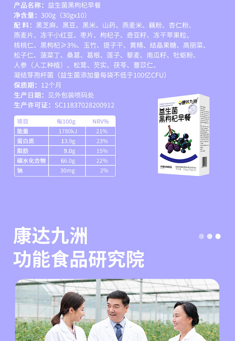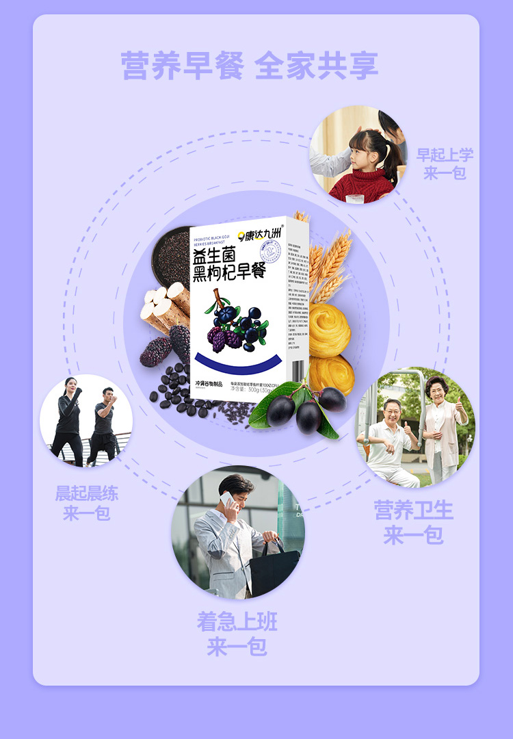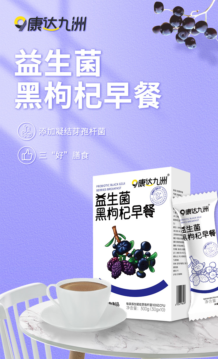 自营(康达九洲)-益生菌黑枸杞早餐300g